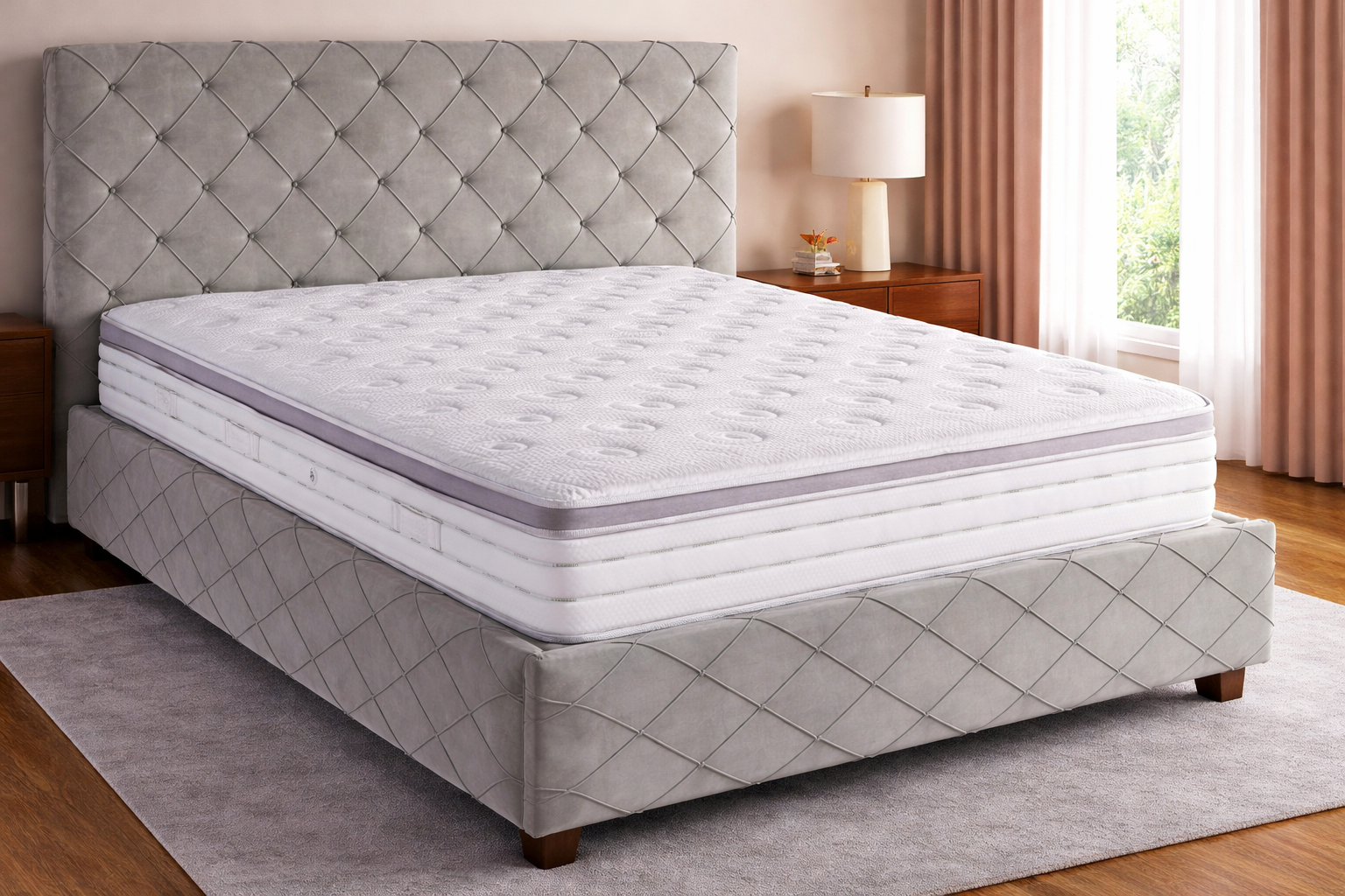 Αναβαθμίστε το υπνοδωμάτιό σας με ένα κρεβάτι που συνδυάζει διαχρονική κομψότητα και σύγχρονη αισθητική. Το εντυπωσιακό καπιτονέ κεφαλάρι με διακριτικά κουμπιά δημιουργεί ένα πολυτελές αποτέλεσμα, προσφέροντας παράλληλα άνετη στήριξη για στιγμές χαλάρωσης.Η επένδυση σε απαλή γκρι απόχρωση χαρίζει φωτεινότητα και αρμονία στον χώρο, ενώ το καπιτονέ σχέδιο στη βάση ολοκληρώνει με ισορροπία το συνολικό design. Η στιβαρή κατασκευή και τα ανθεκτικά ποδαράκια εξασφαλίζουν σταθερότητα και αντοχή στον χρόνο, κάνοντάς το ιδανική επιλογή για καθημερινή χρήση.
