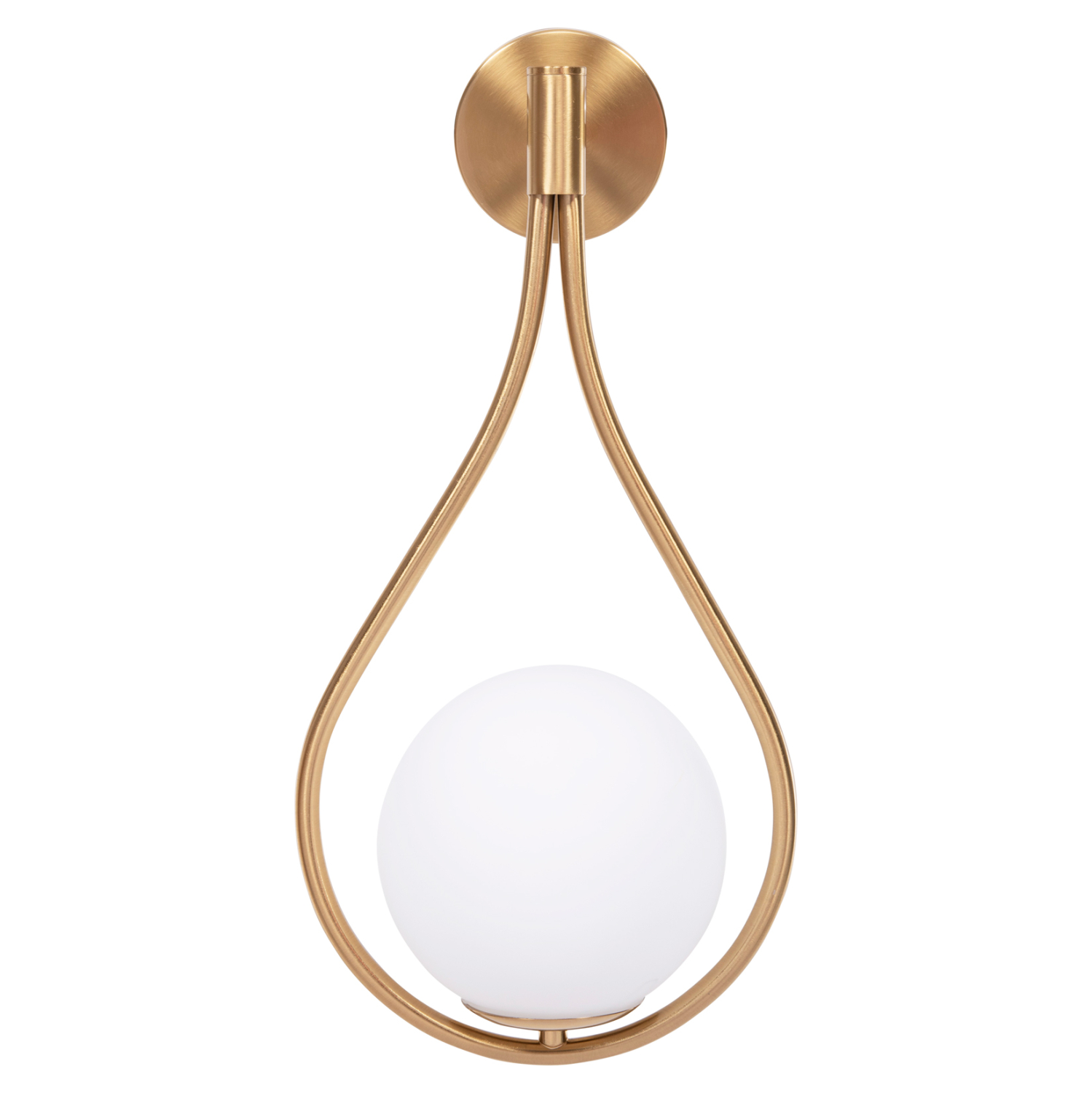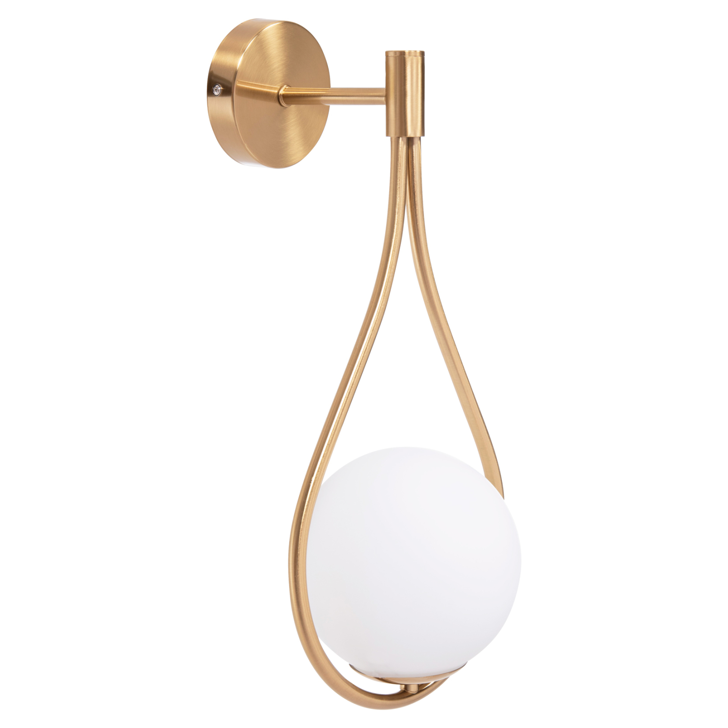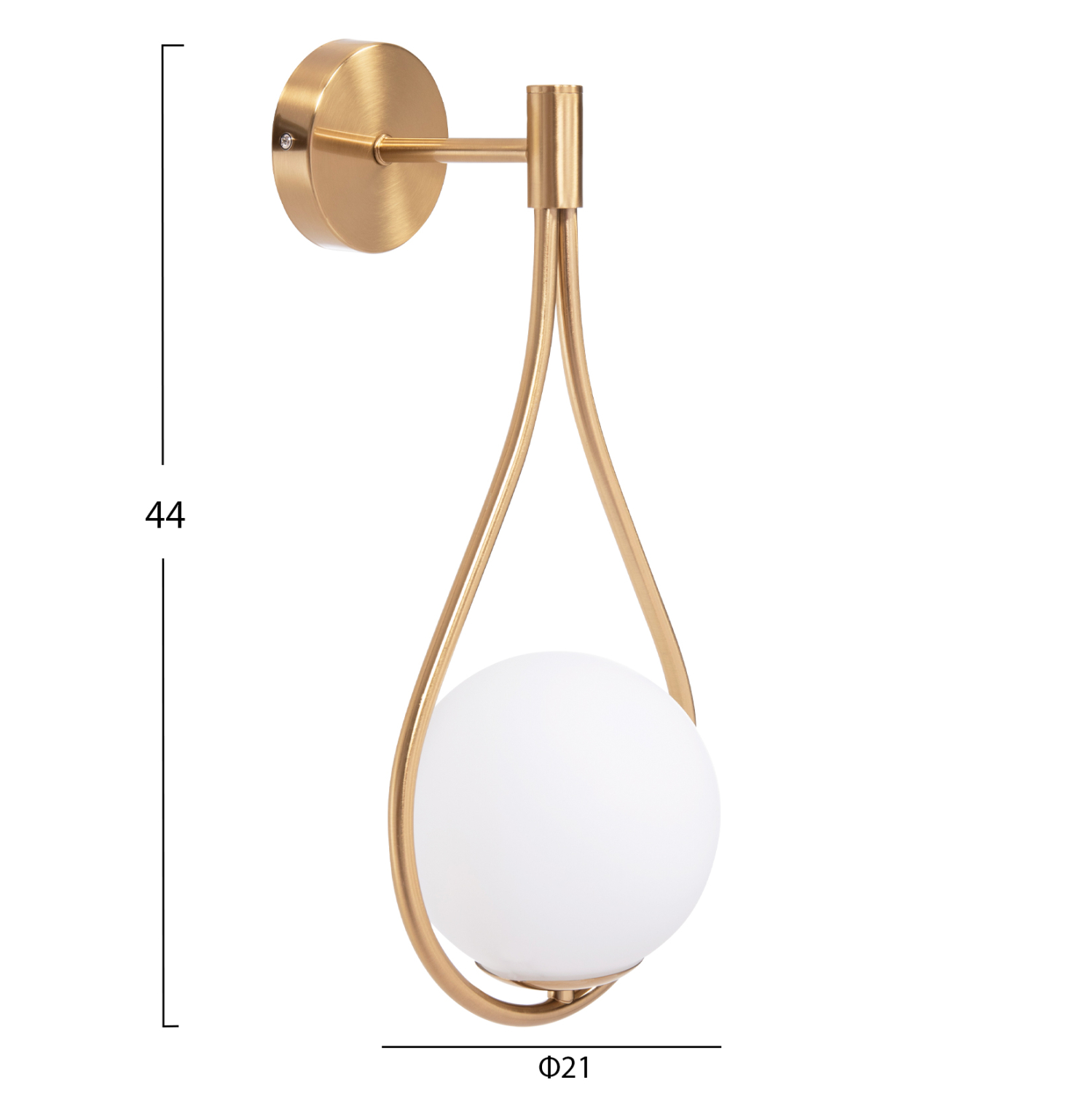 Η μεταλλική απλίκα τοίχου BAIS είναι μια μοντέρνα πρόταση που θα τραβήξει τα βλέμματα. Αν και απλίκα, το design παραπέμπει σε ΧΡΥΣΗ κρεμαστή «σταγόνα» με έναν λευκό γλόμπο στο πλατύ κάτω μέρος της.