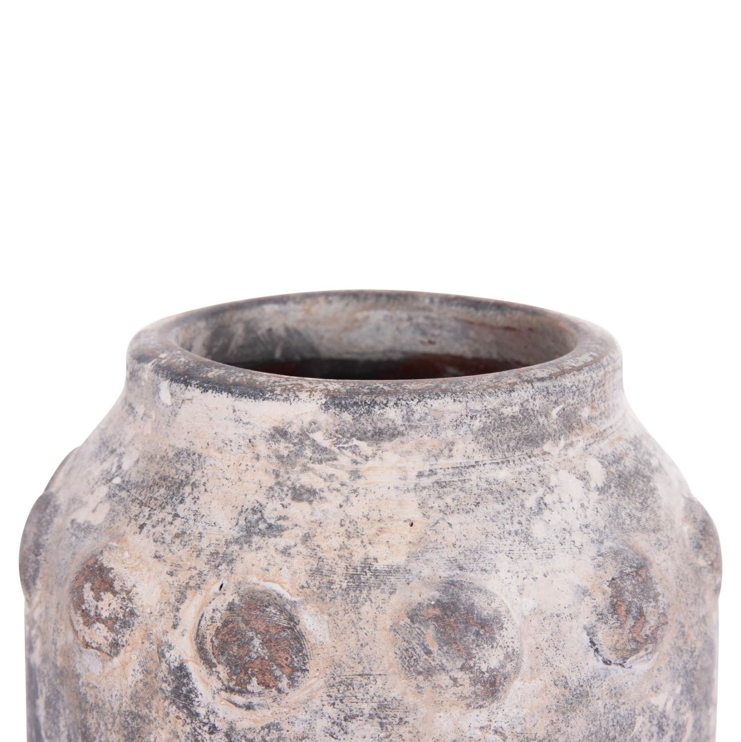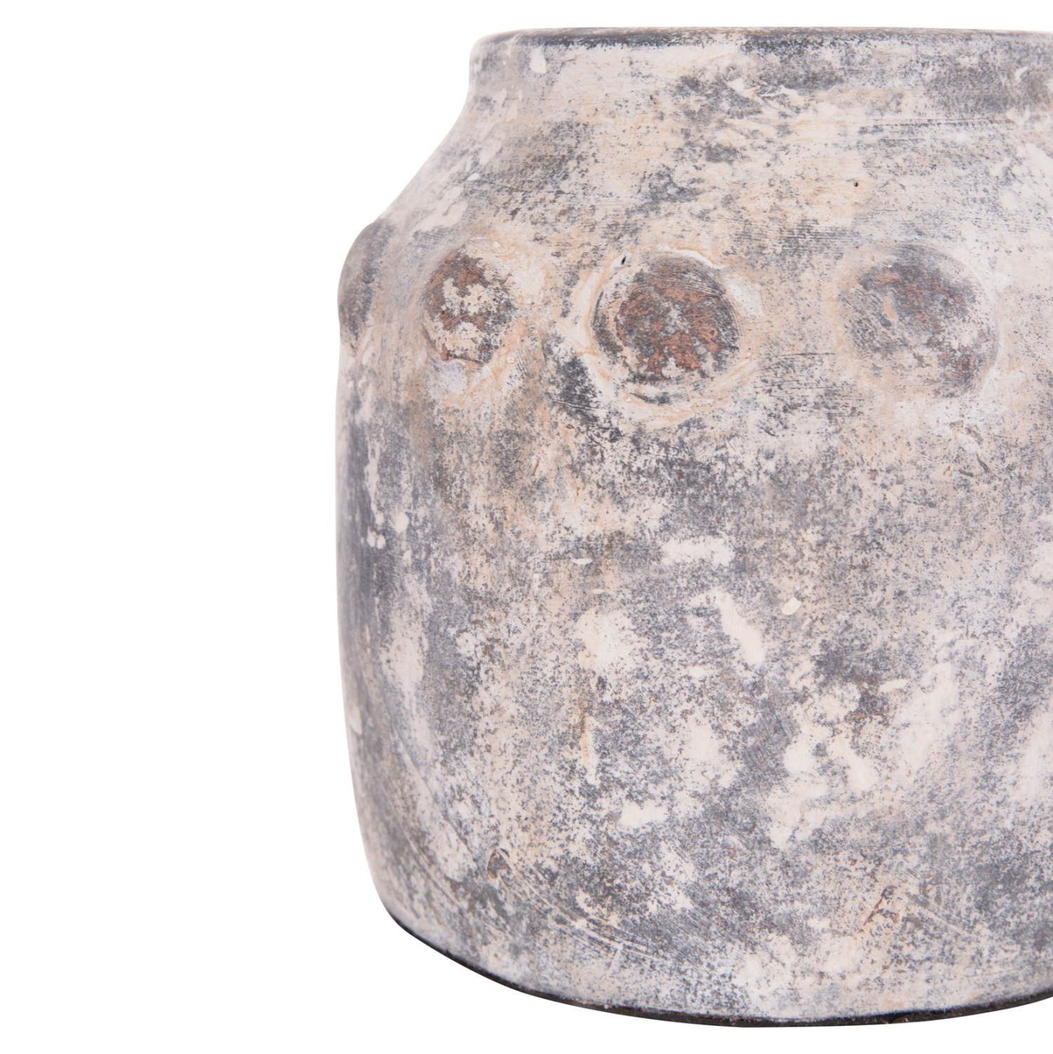 Το διακοσμητικό βάζο VERMO είναι χαμηλό και φαρδύ με μεγάλο στόμιο. Είναι σε παλαιωμένο ΓΚΡΙ χρώμα και μπορεί να ταιριάξει οπουδήποτε το θελήσετε. Είτε στο σπίτι είτε σε επαγγελματικούς χώρους.