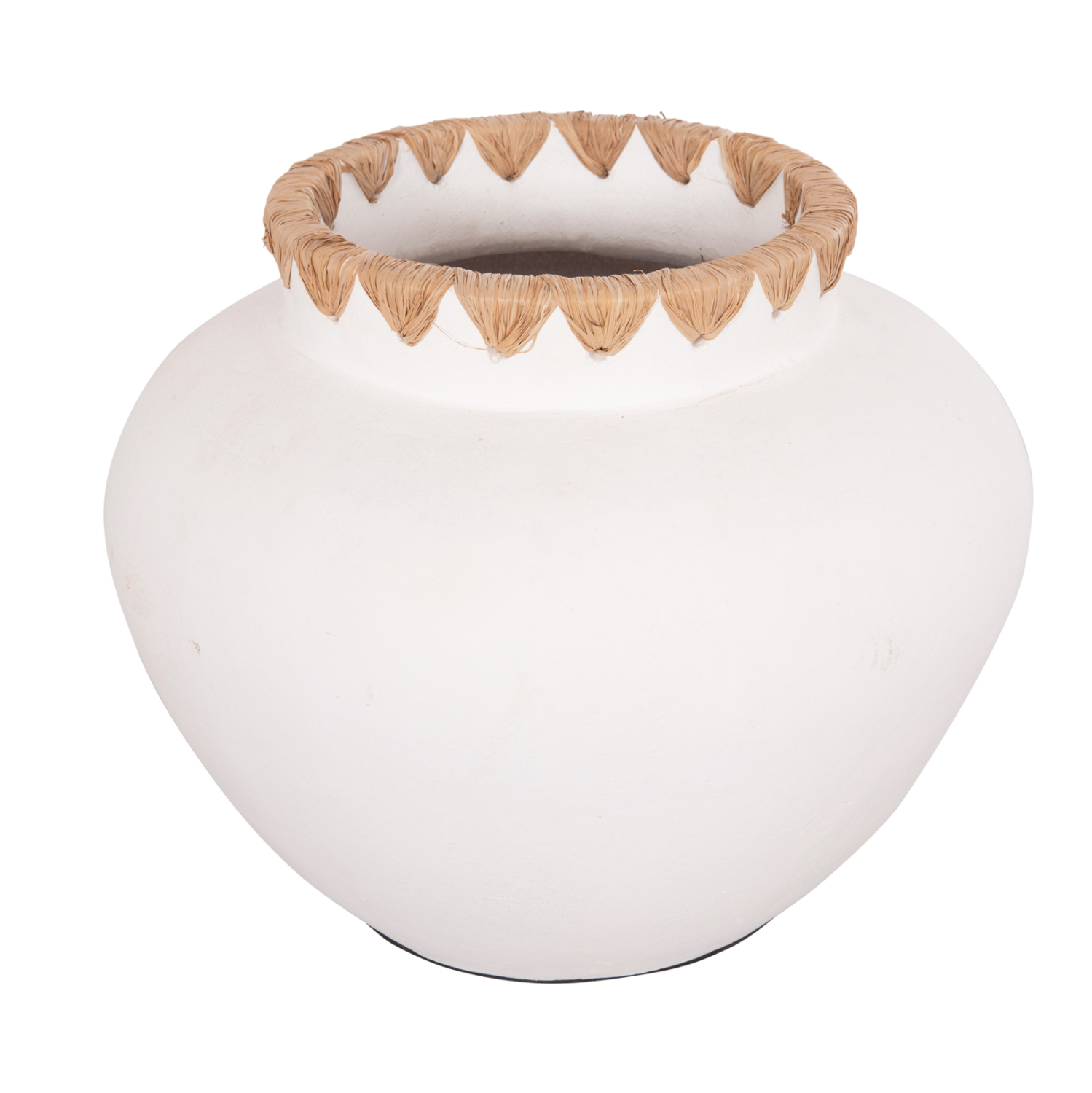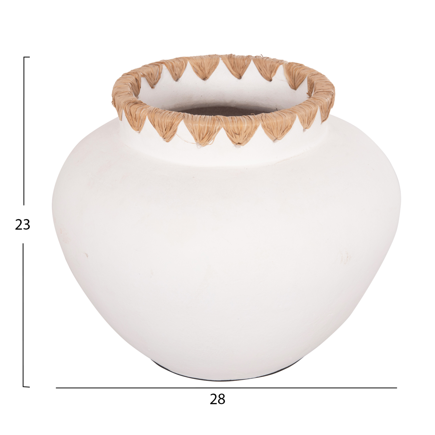 Το διακοσμητικό βάζο RENTON(Μ) είναι φαρδύ με μεγάλο στόμιο με πλέξη ψάθας. Είναι σε ΛΕΥΚΗ απόχρωση και μπορεί να ταιριάξει οπουδήποτε το θελήσετε. Είτε στο σπίτι είτε σε επαγγελματικούς χώρους.