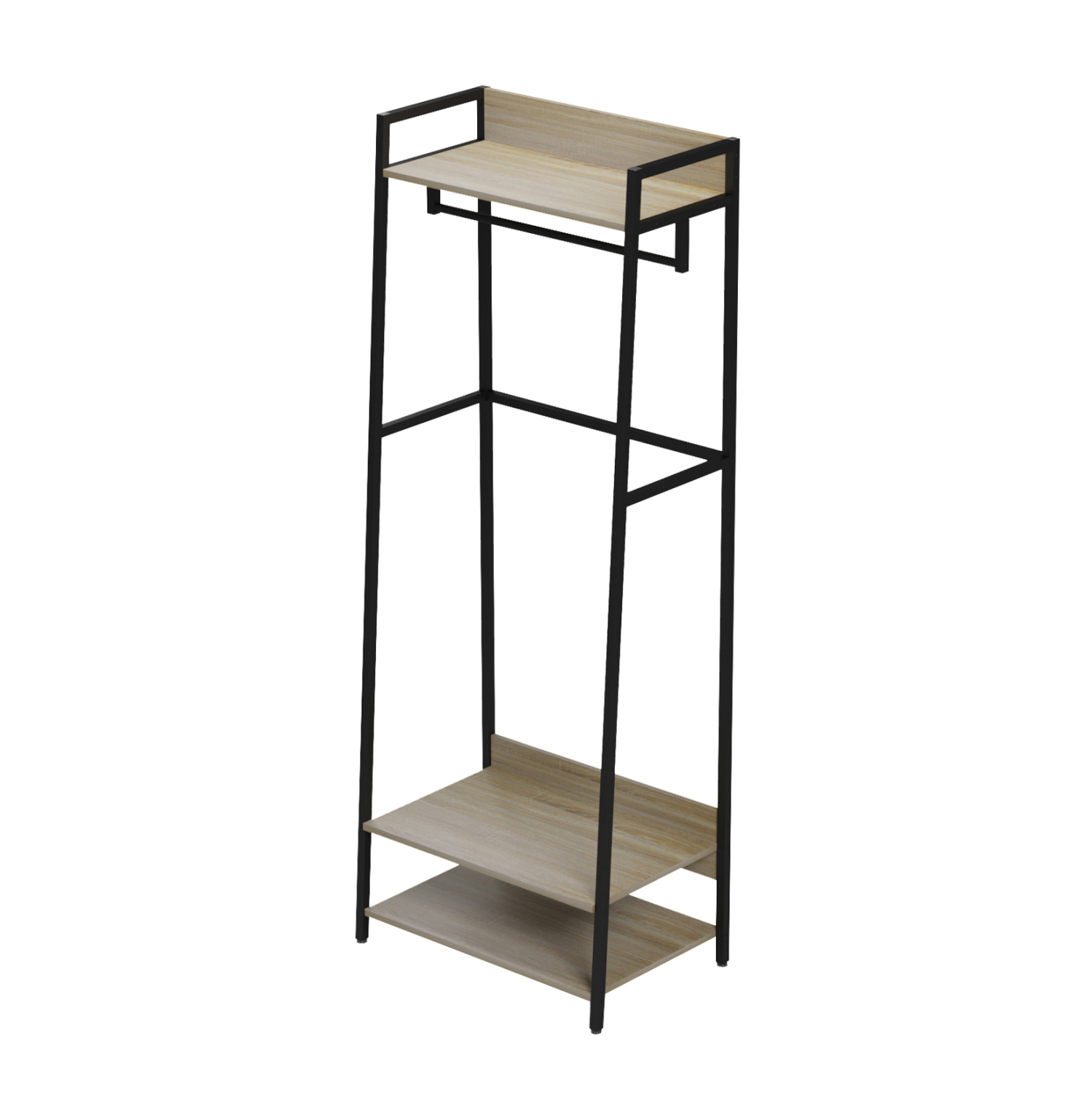 Το επιδαπέδιο έπιπλο εισόδου σε στυλ ανοιχτής ντουλάπας ARANJA συνδυάζει αρμονικά την πρακτικότητα με το industrial στυλ. Διαθέτει 3 στο κάτω μέρος κι άλλο ένα επάνω, ενώ ακριβώς κάτω από αυτό το ράφι υπάρχει μια μπάρα κρέμασης ρούχων. Ο σκελετός είναι μεταλλικός σε ΜΑΥΡΟ χρώμα, ενώ τα ράφια είναι από μελαμίνη σε SONAMA χρώμα.