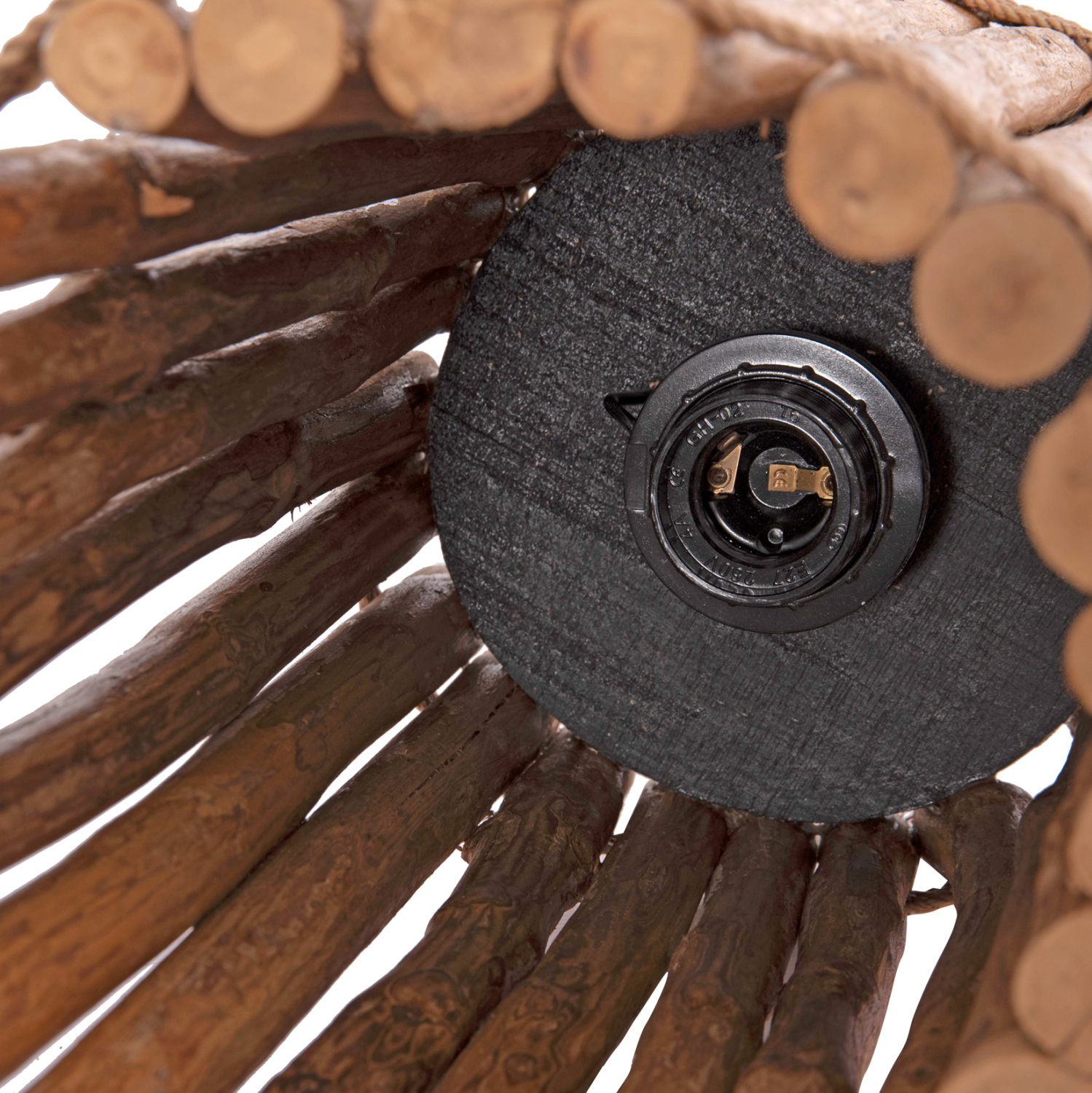 Το φωτιστικό έχει γίνει από driftwood. Πρόκειται για κομμάτια ξύλου που έχουν ξεβραστεί σε μια ακτή ή παραλία μιας θάλασσας, λίμνης ή ποταμού από τη δράση των ανέμων, της παλίρροιας ή των κυμάτων. Αυτά τα κομμάτια συλλέγονται, και υπόκεινται σε επεξεργασία προκειμένου να χρησιμοποιηθούν για διάφορους σκοπούς.