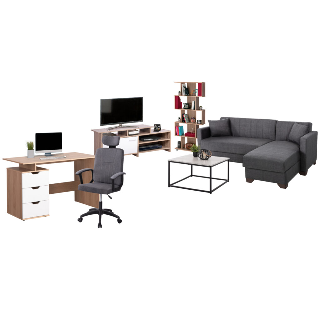 Διπλό κρεβάτι CAPRI κατασκευασμένο από μελαμίνη σε sonama απόχρωση με γκρι λεπτομέρειες & 2 συρτάρια.