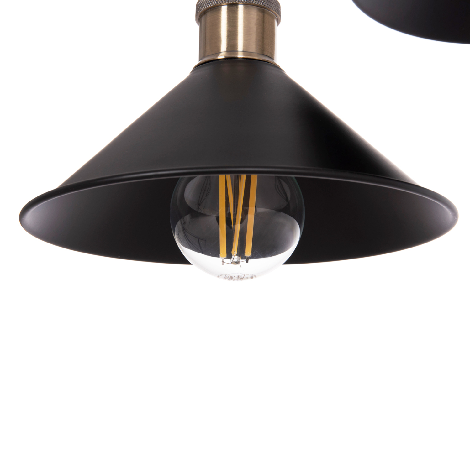 Το κρεμαστό δίφωτο φωτιστικό οροφής BELL είναι ένα όμορφο κρεμαστό με μαύρη βάση και μαύρα καλώδια κρέμασης. Οι λάμπες είναι σε διαφορετικά ύψη και τα καπέλα είναι μεταλλικά με διακριτικές λεπτομέρειες σε ανοιχτό χάλκινο χρώμα στο επάνω μέρος τους.
