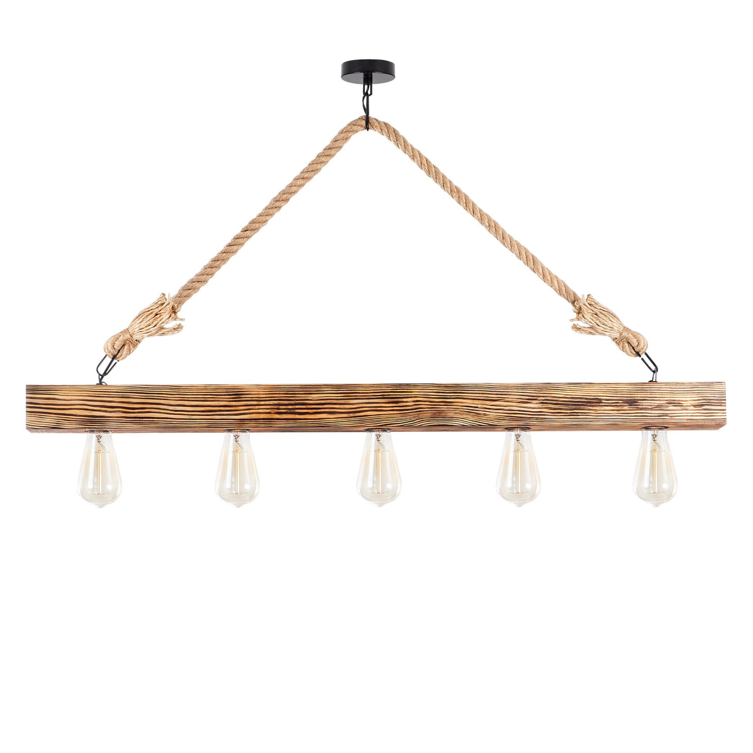 Φωτιστικό οροφής industrial αλλά και rustic στιλ. Κατασκευασμένο από ξύλινη ράγα φυσικού χρώματος και σχοινί σε φυσική απόχρωση.