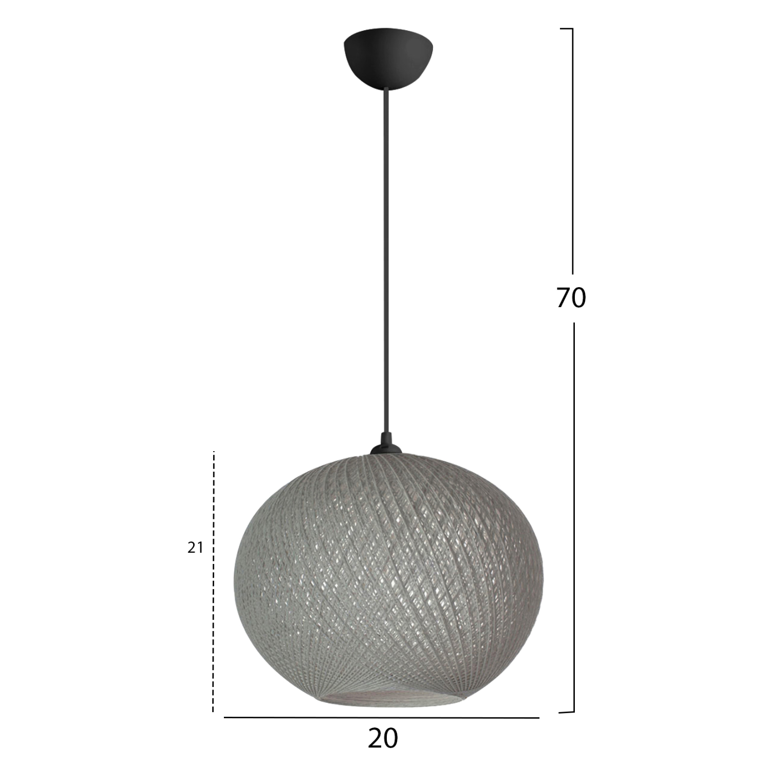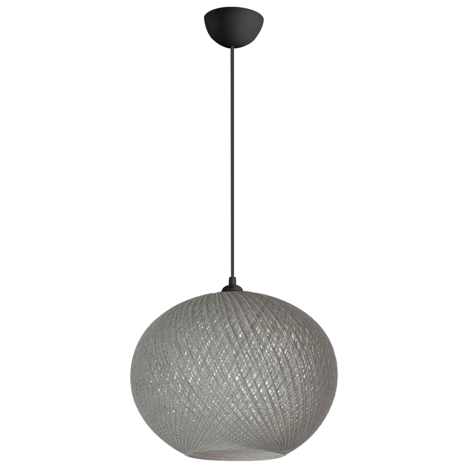 Είναι ένα μονόφωτο φωτιστικό σε σχήμα σφαιρικό και είναι επενδυμένο με λεπτό πλεκτό σκοινί, υψηλής ποιότητας και αντοχής στο χρόνο, σε γκρι απόχρωση.
