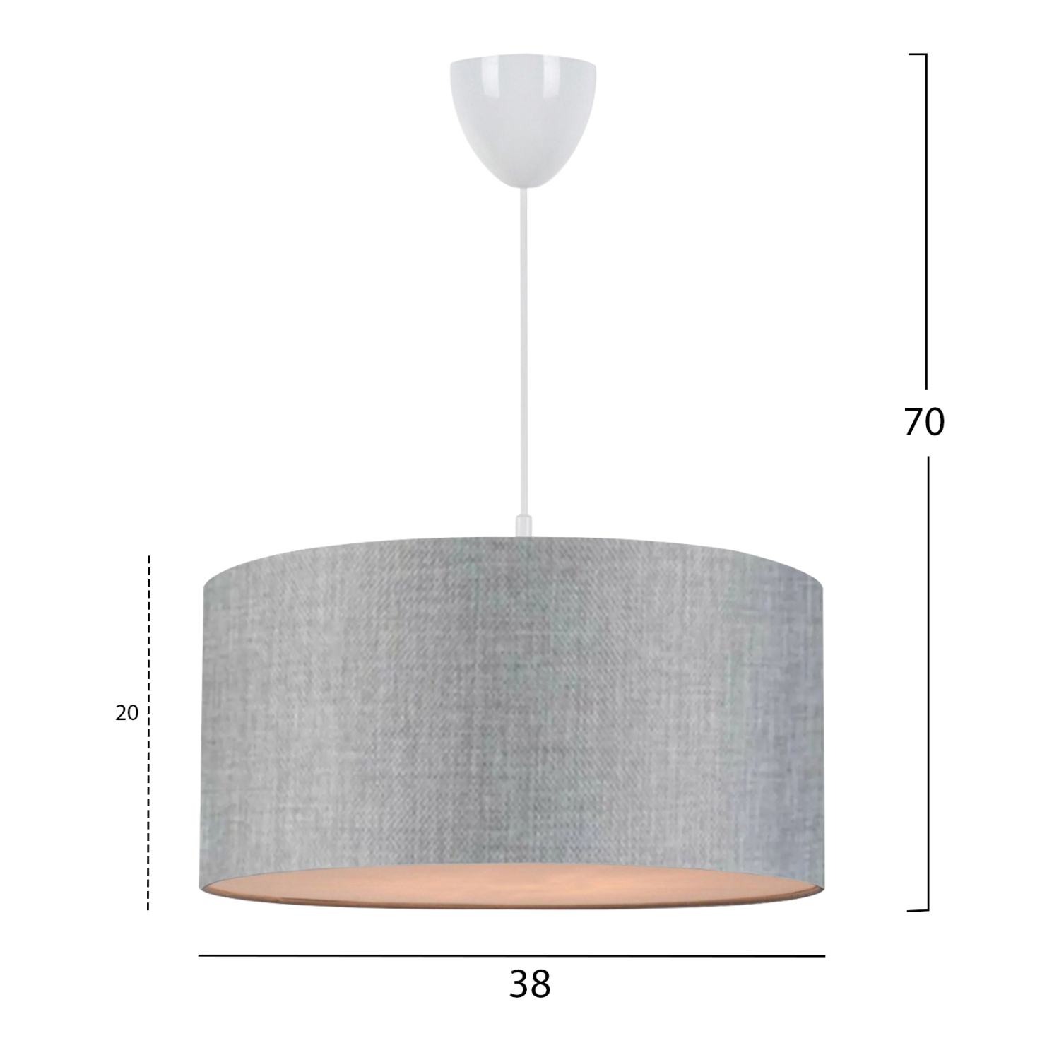 Είτε είναι μέρα, είτε νύχτα, είτε είναι αναμμένο ή σβηστό, το κρεμαστό μονόφωτο φωτιστικό με υφασμάτινο «τύμπανο» προσφέρει στον χώρο σας στιγμιαία στυλιστική αναβάθμιση. Εκεί που νομίζατε ότι η αγάπη μας και η δική σας για οτιδήποτε υφασμάτινο δεν μπορούσε να φτάσει σε νέα σύνορα, ήρθαν αυτά τα φωτιστικά οροφής. Η υφή του υφάσματος μπορεί να είναι λίγο ασυνήθιστη για κρεμαστό φωτιστικό, αλλά χάρη στην λευκή εσωτερική του επιφάνεια, δίνει στο φως μια απαλή λάμψη. Το γκρι χρώμα του «τύμπανου» πραγματικά δίνει την εντύπωση της πολυτέλειας χωρίς όριο.