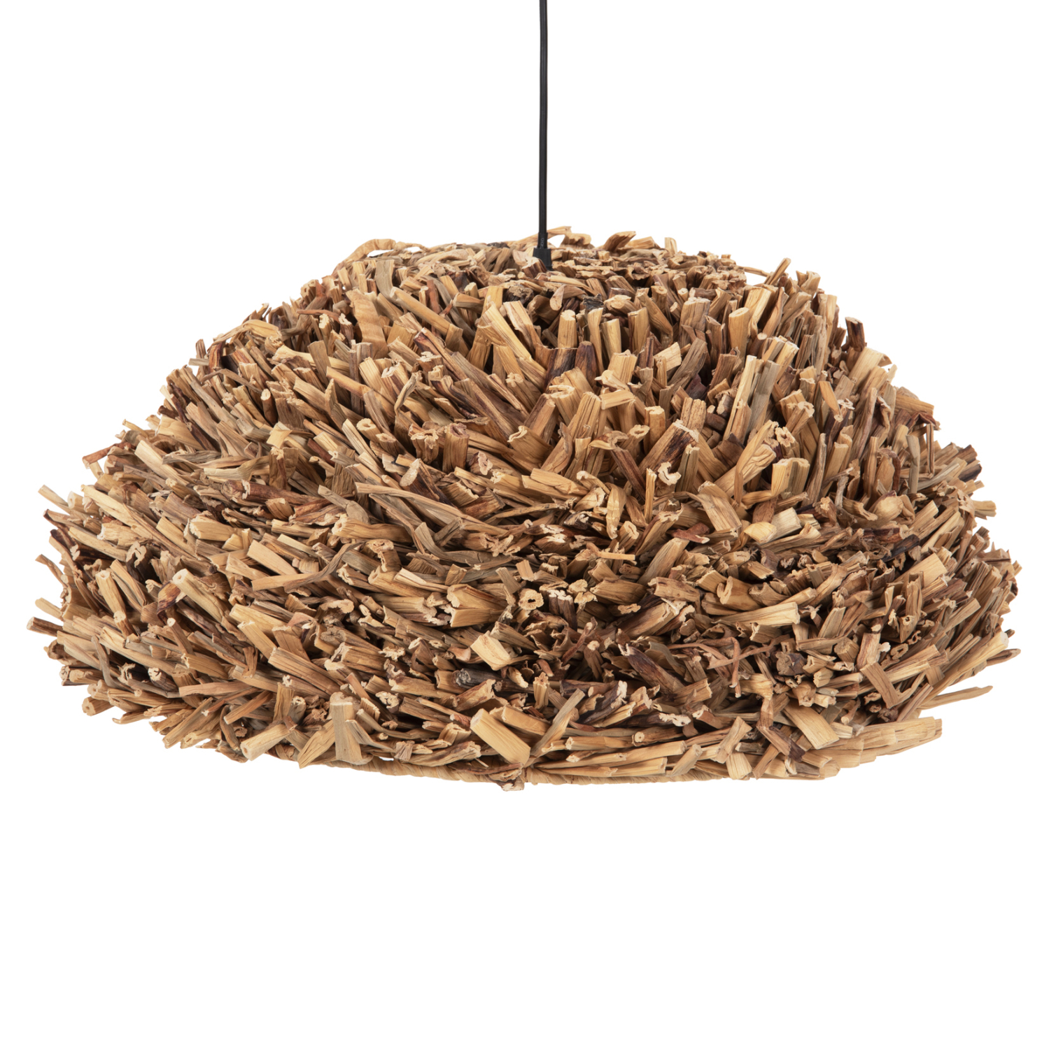 Αυτό το μεγάλο κρεμαστό φωτιστικό οροφής σε σχήμα καμπάνας διαθέτει μεταλλικό σκελετό ο οποίος είναι εξολοκλήρου επενδυμένος με κομμάτια υδροϋάκινθου σε ΦΥΣΙΚΟ χρώμα. Ένα πολύ ιδιαίτερο φωτιστικό που διαχέει το φως προς τα κάτω και θα κλέψει τις εντυπώσεις όπου κι αν τοποθετηθεί.