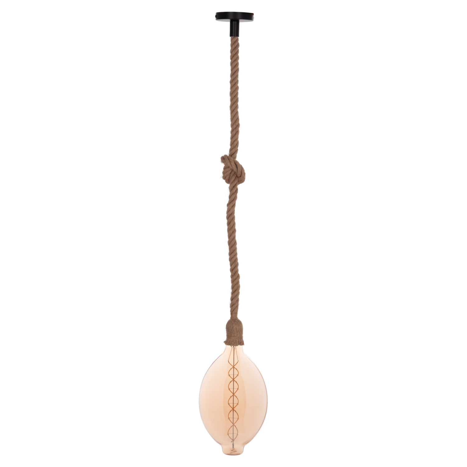 Θέλετε να ξεχωρίσετε και να δημιουργήσετε μια εντελώς διαφορετική αίσθηση στο σπίτι ή στην επιχείρησή σας; Αυτό το φωτιστικό οροφής με την μία λάμπα που κρέμεται από σχοινί και με το ντουί ΚΑΛΥΜΜΕΝΟ από αυτό το σχοινί, είναι σίγουρο ότι θα τραβήξει όλα τα βλέμματα και θα ξεκινήσει συζητήσεις. Αφήστε το απλά να κρέμεται ή φτιάξτε έναν κόμπο όπως εσείς θέλετε, έτσι ώστε να δώσετε την προσωπική σας πινελιά στον χώρο. Άλλωστε αυτό θα πρέπει να είναι και ένα από τα κυριότερα χαρακτηριστικά του φωτισμού. Να αντανακλά τον χαρακτήρα και την προσωπικότητα του ιδιοκτήτη! Ο φωτισμός είναι το κόσμημα του σπιτιού ή του επαγγελματικού σας χώρου.