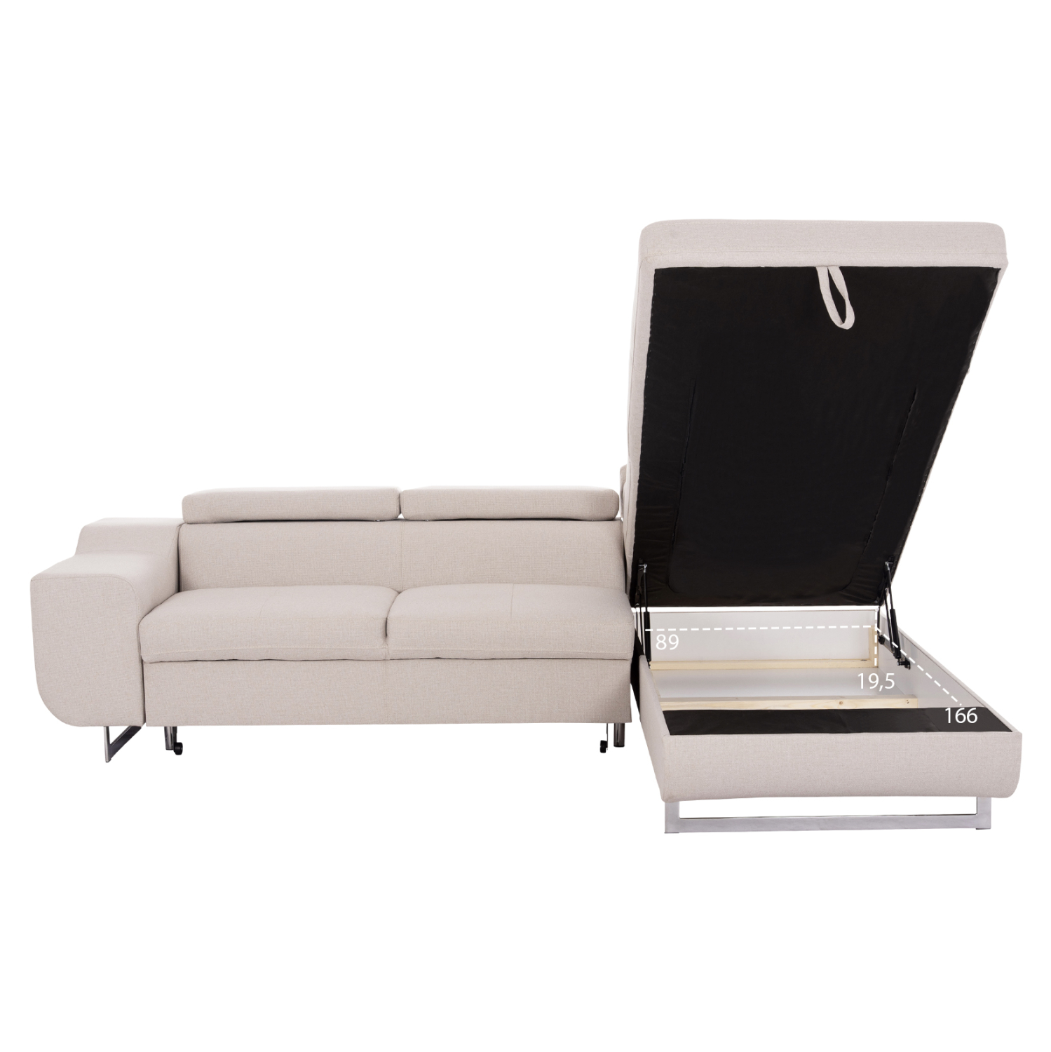 Ο ENCORE είναι ένας εξαιρετικός γωνιακός καναπές-κρεβάτι. Η επένδυσή του είναι με εξαιρετικής ποιότητας ΜΠΕΖ “easy clean”* ύφασμα και τα πόδια είναι μεταλλικά και ψηλά. Τα χαρακτηριστικά του, όμως, τον κάνουν να ξεχωρίζει από κάθε άποψη! Η πλευρά που σχηματίζει την μόνιμη δεξιά γωνία διαθέτει αποθηκευτικό χώρο ο οποίος είναι προσβάσιμος χάρη σε έναν εύχρηστο μηχανισμό με χερούλι-ιμάντα που ανασηκώνει το κάθισμα και το κρατάει ανασηκωμένο για να μπορείτε απερίσπαστοι να βάζετε και να βγάζετε ότι θέλετε. Το κρεβάτι σχηματίζεται τραβώντας το κάτω μέρος της αριστερής πλευράς και ανασηκώνοντας το εξτρά στρώμα (ράντζο) που είναι τοποθετημένο εκεί. Τέλος, τα 3 προσκέφαλα (εκτός της γωνίας) είναι ρυθμιζόμενα με λειτουργία recline, ολοκληρώνοντας με τον καλύτερο τρόπο την απαράμιλλη πρακτικότητα αυτού του υπέροχου καναπέ.