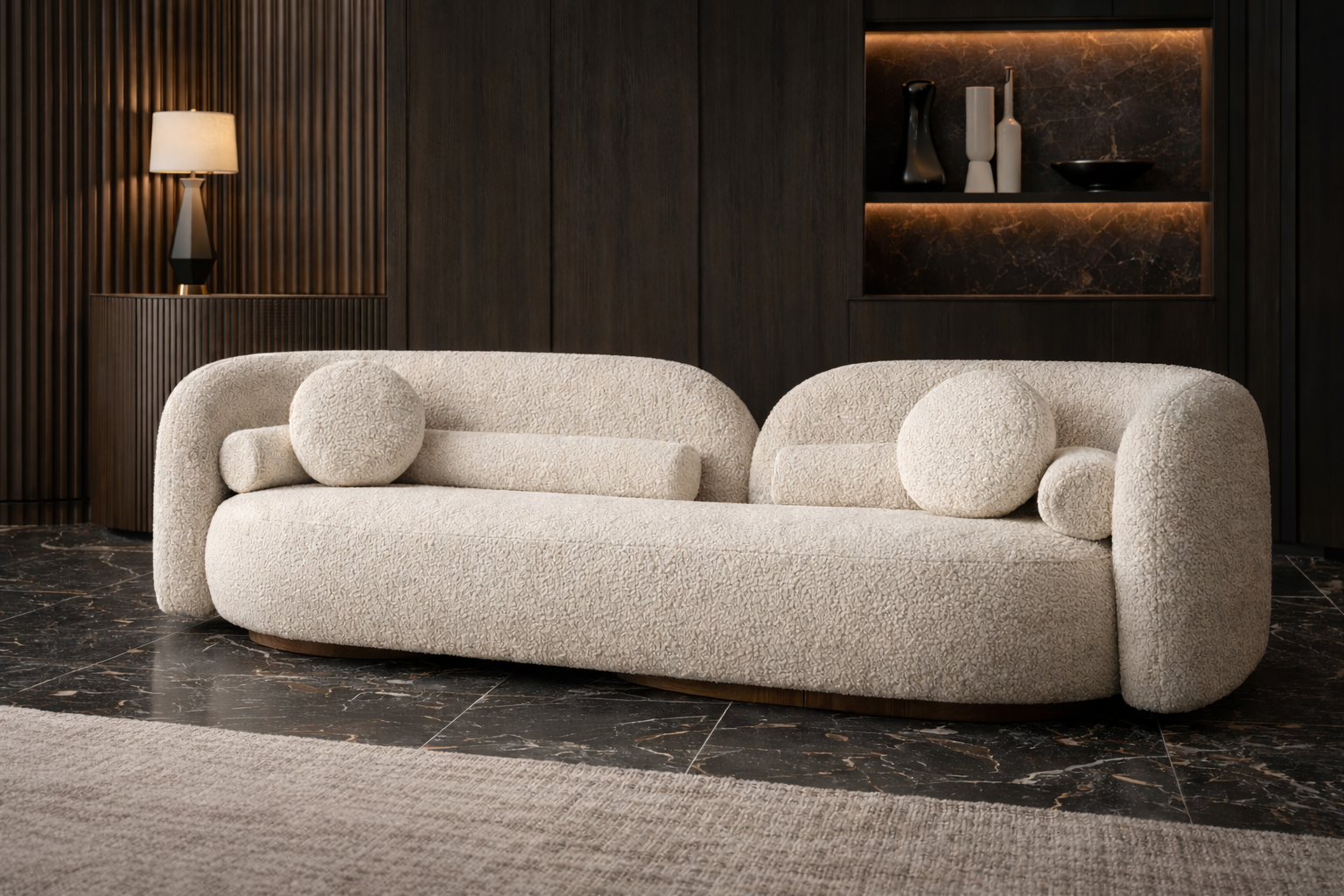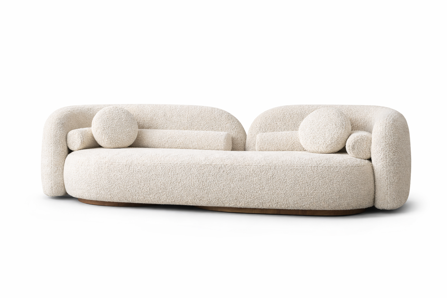 Ο καναπές AURA είναι μια statement δημιουργία που ισορροπεί ανάμεσα στη γλυπτική φόρμα και την απόλυτη άνεση. Με οργανικές καμπύλες, καθαρές γραμμές και premium υφή, αποπνέει διακριτική πολυτέλεια και αρχιτεκτονική αρμονία.Η μονολιθική του σιλουέτα αγκαλιάζει τον χώρο, ενώ οι απαλοί, καμπύλοι όγκοι δημιουργούν μια αίσθηση ροής και ηρεμίας. Τα στρογγυλά διακοσμητικά μαξιλάρια ενισχύουν τη γλυπτική ταυτότητα του σχεδιασμού, μετατρέποντας τον AURA σε centerpiece κάθε σύγχρονου interior.Επενδυμένος με υψηλής ποιότητας υφάσμα, προσφέρει πλούσια υφή και ζεστή αισθητική, ενώ η προσεγμένη κατασκευή του εγγυάται σταθερότητα και αντοχή στον χρόνο.