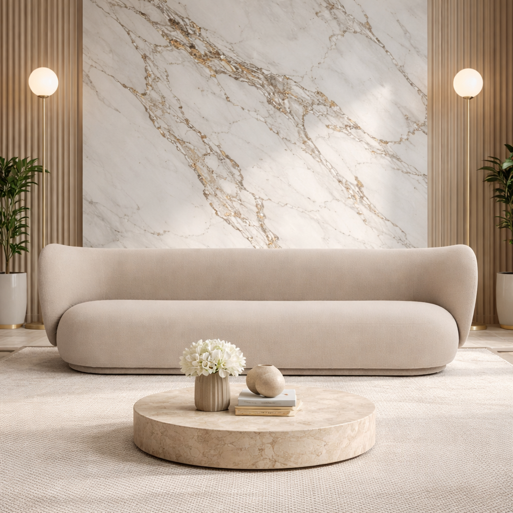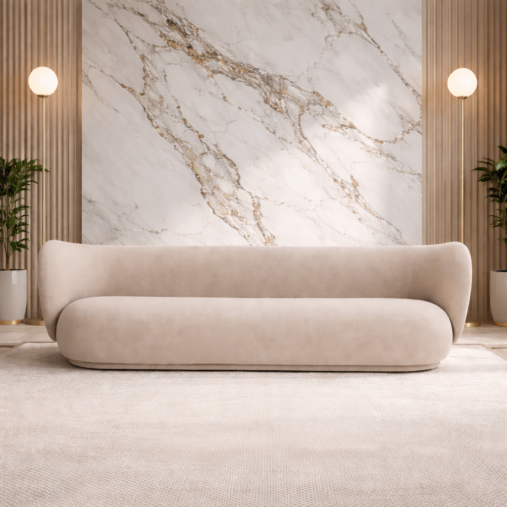 Ο καναπές Velour αποτελεί μια εκλεπτυσμένη πρόταση σύγχρονου design, με έντονες καμπύλες και αρμονική, “αγκαλιαστή” σιλουέτα. Τα εντυπωσιακά, στρογγυλεμένα μπράτσα ενσωματώνονται ομαλά στην πλάτη, δημιουργώντας μια ενιαία, ρευστή φόρμα που προσδίδει χαρακτήρα σε κάθε χώρο.Η επένδυση από υψηλής ποιότητας υφασμάτινη ταπετσαρία σε ζεστή μπεζ απόχρωση αναδεικνύει τη minimal αισθητική του και προσφέρει απαλή, ευχάριστη υφή. Το βαθύ, αναπαυτικό κάθισμα σε συνδυασμό με τη στιβαρή κατασκευή εξασφαλίζουν άνεση και ανθεκτικότητα στον χρόνο.