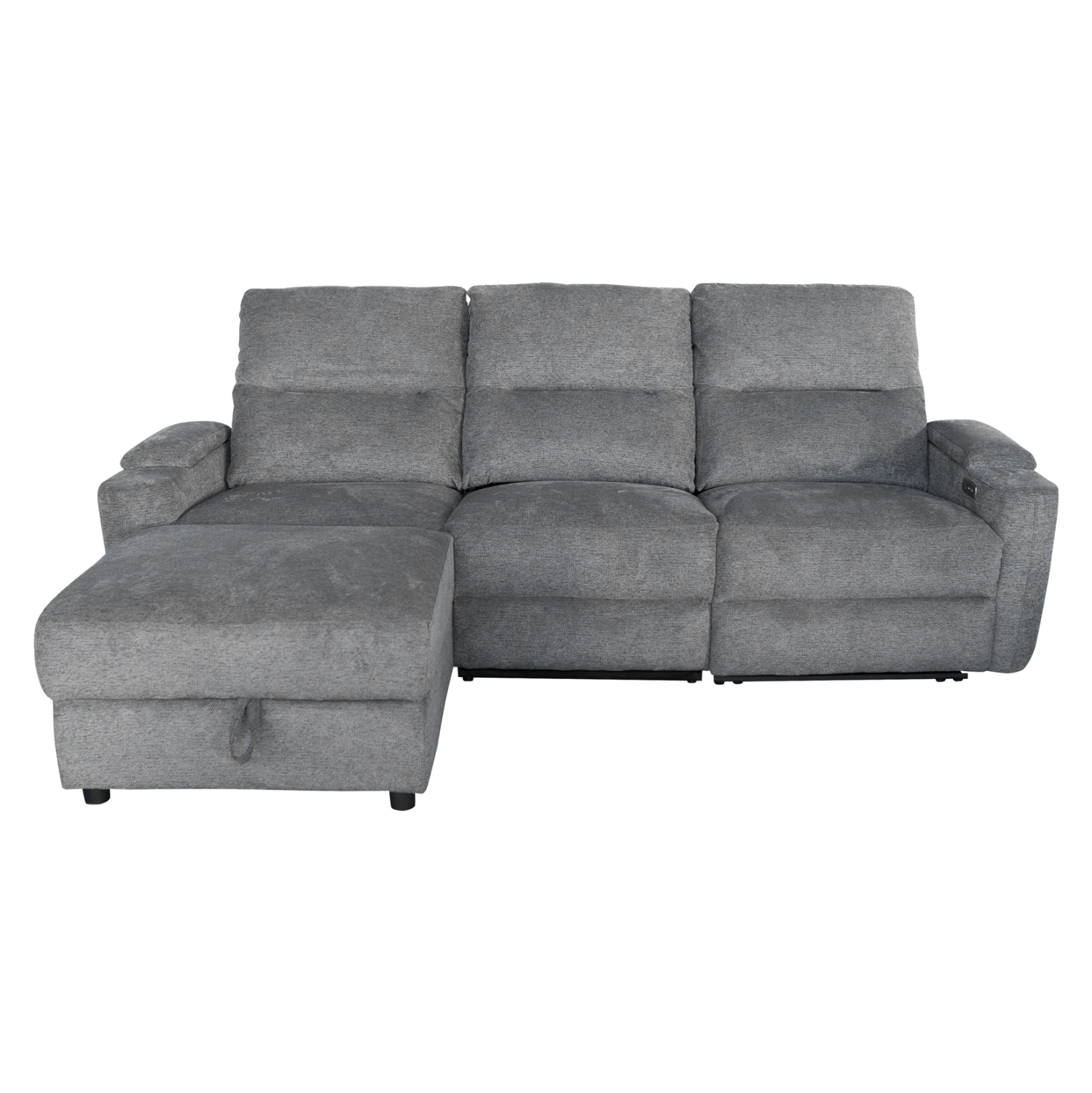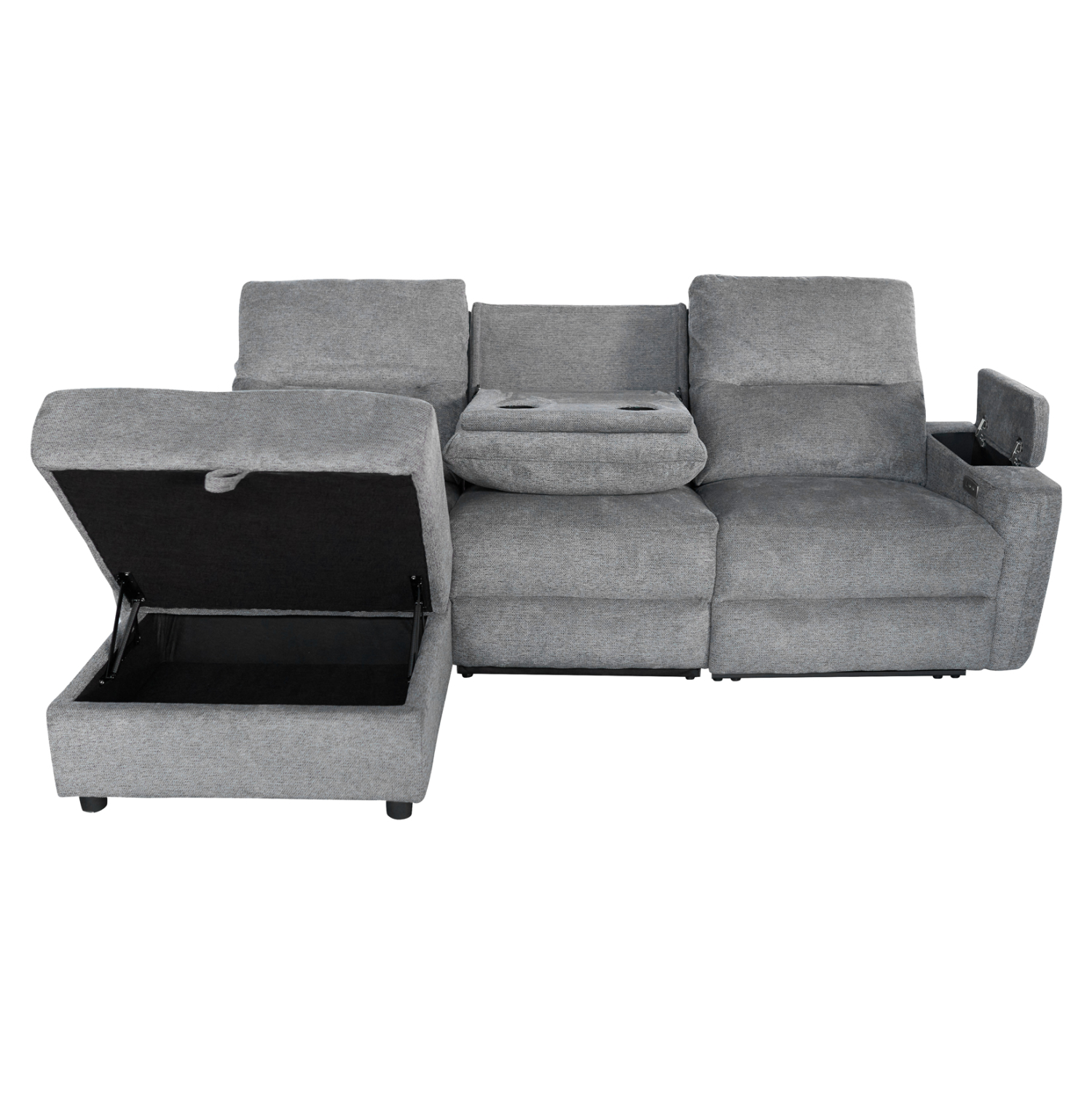 Τριθέσιος Αριστερός Γωνιακός Καναπές SYNTHIA– ΓΚΡΙ Ύφασμα, με Ηλεκτρικό Ανακλινόμενο Κάθισμα, Αποθηκευτικό Χώρο & Πτυσσόμενο Τραπέζι
