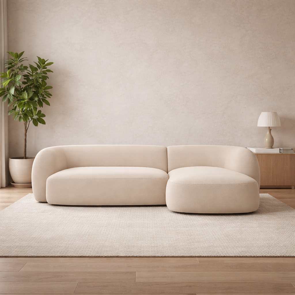 Ο σχεδιασμός του με χαμηλή πλάτη και καμπύλα τελειώματα προσφέρει μία αίσθηση απαλότητας και αρμονίας, ενώ η ουδέτερη μπεζ απόχρωση τον καθιστά εύκολα συνδυάσιμο με κάθε διακοσμητικό ύφος. Η modular κατασκευή του επιτρέπει ευελιξία στη διαρρύθμιση, προσαρμόζοντας τον χώρο στις ανάγκες σας.