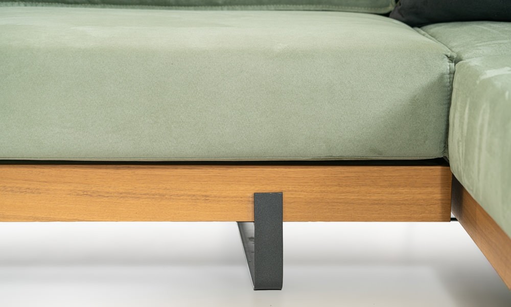 Τα μαλακά μαξιλάρια και η ευρύχωρη γωνιακή διάταξη εξασφαλίζουν άνετη φιλοξενία για όλη την οικογένεια ή τους επισκέπτες, ενώ τα σιδερένια πόδια προσθέτουν σταθερότητα και μία διακριτική industrial πινελιά.