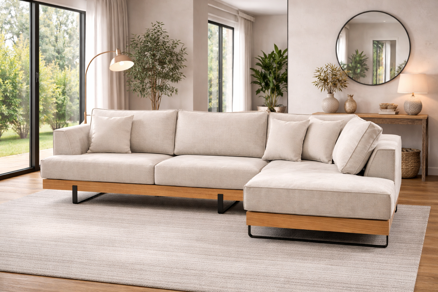 Γωνιακός καναπές IFES συνδυάζει μοντέρνο minimal σχεδιασμό με υψηλή άνεση, δημιουργώντας έναν ιδανικό χώρο χαλάρωσης για κάθε σύγχρονο σπίτι. Με καθαρές γραμμές, ουδέτερη γκρι απόχρωση και λεπτομέρειες ξύλου στη βάση, προσφέρει διαχρονική αισθητική που ταιριάζει εύκολα σε κάθε διακόσμηση.