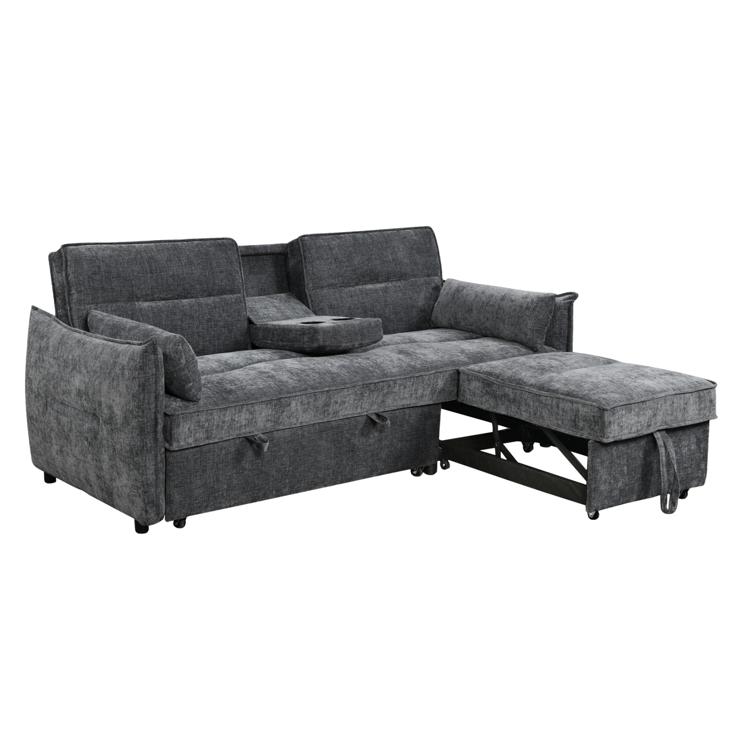 Ο διθέσιος καναπές-κρεβάτι VELAR είναι μία ιδιαίτερα πρακτική λύση για χώρους που απαιτούν ευελιξία, καθώς συνδυάζει άνεση, εργονομία και λειτουργικό σχεδιασμό. Η ενσωματωμένη ποτηροθήκη/μπράτσο στη μέση και ο διπλός συρόμενος μηχανισμός προσφέρουν πολλαπλές δυνατότητες διαμόρφωσης, ενώ η επένδυση σε γκρι ύφασμα τον καθιστά ιδανικό για σύγχρονα σαλόνια.