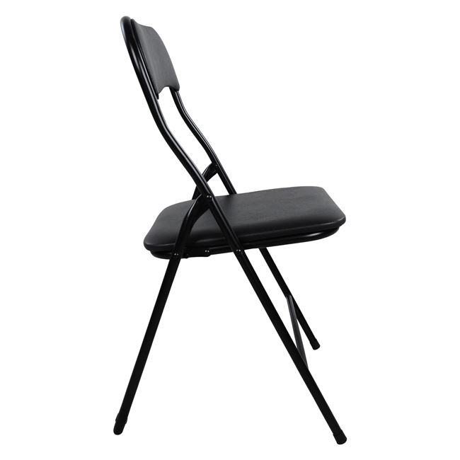 Καρέκλα μεταλλική πτυσσόμενη με επένδυση από PVC σε μαύρη απόχρωση.