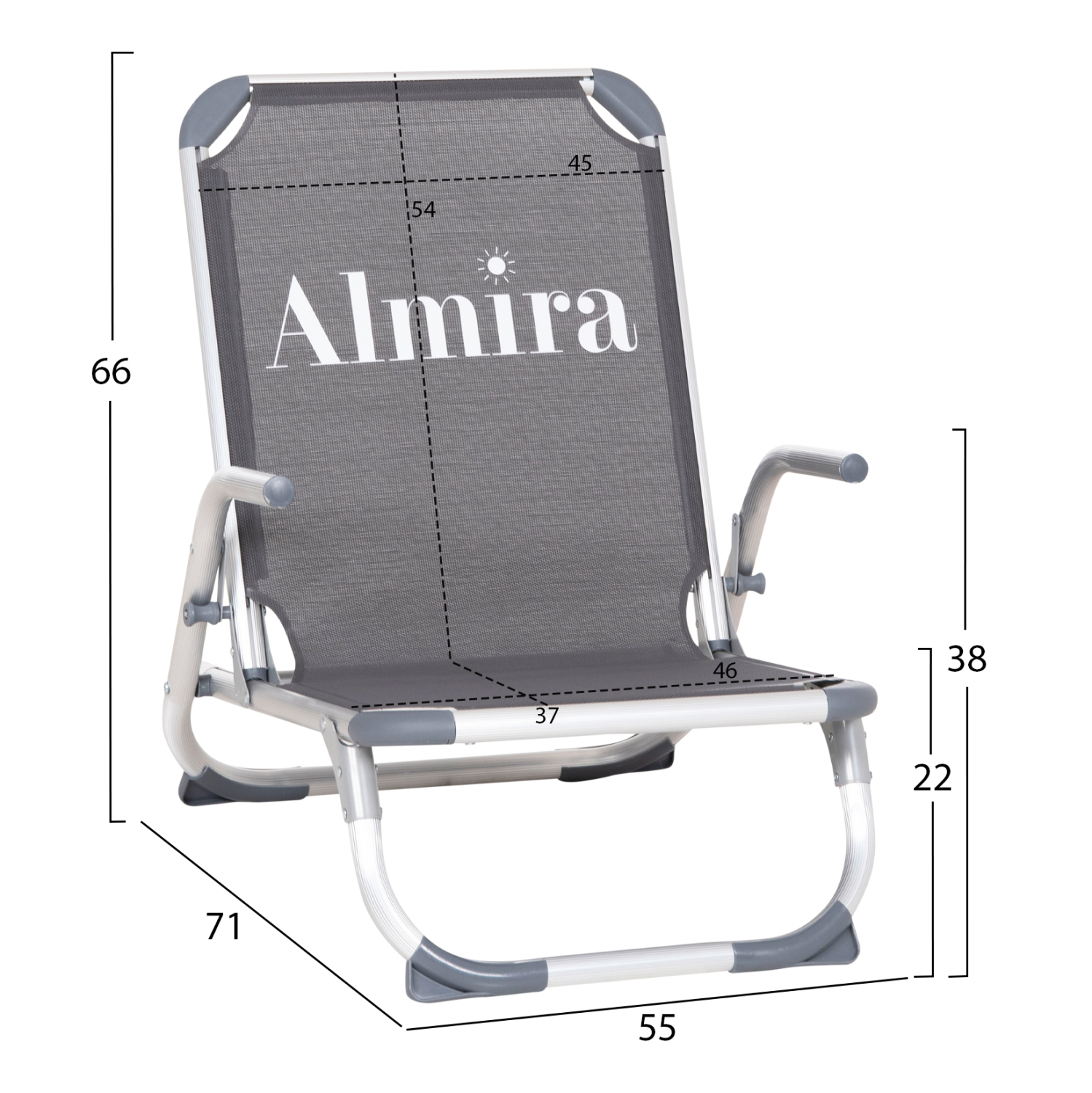 Αναβαθμίστε την καλοκαιρινή εμπειρία με το πτυσσόμενο κάθισμα παραλίας Almira. Σχεδιασμένο για όσους αναζητούν τον απόλυτο συνδυασμό άνεσης, σταθερότητας και premium αισθητικής, το συγκεκριμένο κάθισμα υπερέχει χάρη στον ενισχυμένο σκελετό βαρέως τύπου και τον εργονομικό του σχεδιασμό με ψηλή πλάτη ενώ το κάθισμά του είναι χαμηλό.