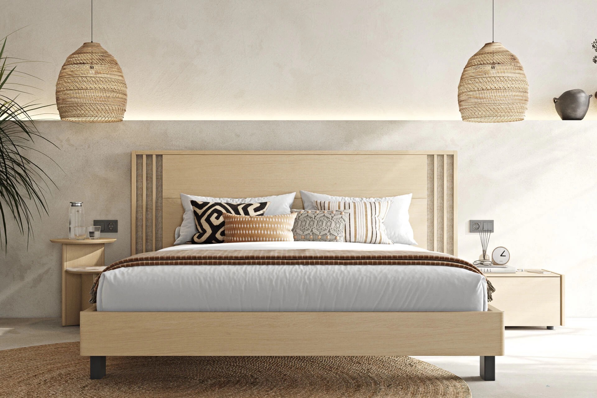 Κρεβατι από ξύλο δρυς. Συνδυάζει μασίφ ξύλινες επιφάνειες και ψάθα στο κεφαλάρι. Το ποδαρικό έχει στρογγυλεμένες γωνιές, στηρίζεται σε ξύλινη βάση με άνετο αποθηκευτικό χώρο. Διαθέσιμο σε 2 διαστάσεις στρώματος. Προσαρμόζεται εύκολα led φωτισμός στο κεφαλάρι και τη βάση. Διαθέσιμα και μαξιλάρια για το κεφαλάρι. Ο φυσικός δρύινος καπλαμάς, έχει ιδιαίτερα χαρακτηριστικά νερά, που διαφοροποιούνται ανάλογα με το τμήμα του κορμού του δένδρου που χρησιμοποιήθηκε, αναδεικνύοντας τη φυσική του ομορφιά! Το κρεβάτι είναι εξοπλισμένο με ειδικά λάστιχα προς αποφυγήν οποιουδήποτε τριξίματος και καλύτερης στήριξης του στρώματος. Δέχεται στρώμα 160*200 ή 180*200 ανάλογα με την επιλογή σας. Προαιρετικός Led φωτισμός μπορεί να τοποθετηθεί περιμετρικά στη βάση του κρεβατιού ή του μπαούλου καθώς και στο κεφαλάρι, με ή χωρίς ανιχνευτή κίνησης, για να δημιουργήσει ιδιαίτερη ατμόσφαιρα με χαμηλή κατανάλωση, ειδικά τις βραδινές ώρες! Με την κρεβατοκάμαρα FLIP μπορείτε να δημιουργήσετε όμορφους και ξεχωριστούς συνδυασμούς, με τα συμπληρωματικά έπιπλα της αντίστοιχης συλλογής, καθώς επίσης και με τα έπιπλα των δρύινων collection της DIAMONT & LUXURY. Όλα τα υλικά που χρησιμοποιούνται για την κατασκευή του, είναι υψηλών προδιαγραφών εναρμονισμένα με της ευρωπαϊκές προδιαγραφές και καθαρίζονται εύκολα με μαλακό νωπό πανί.