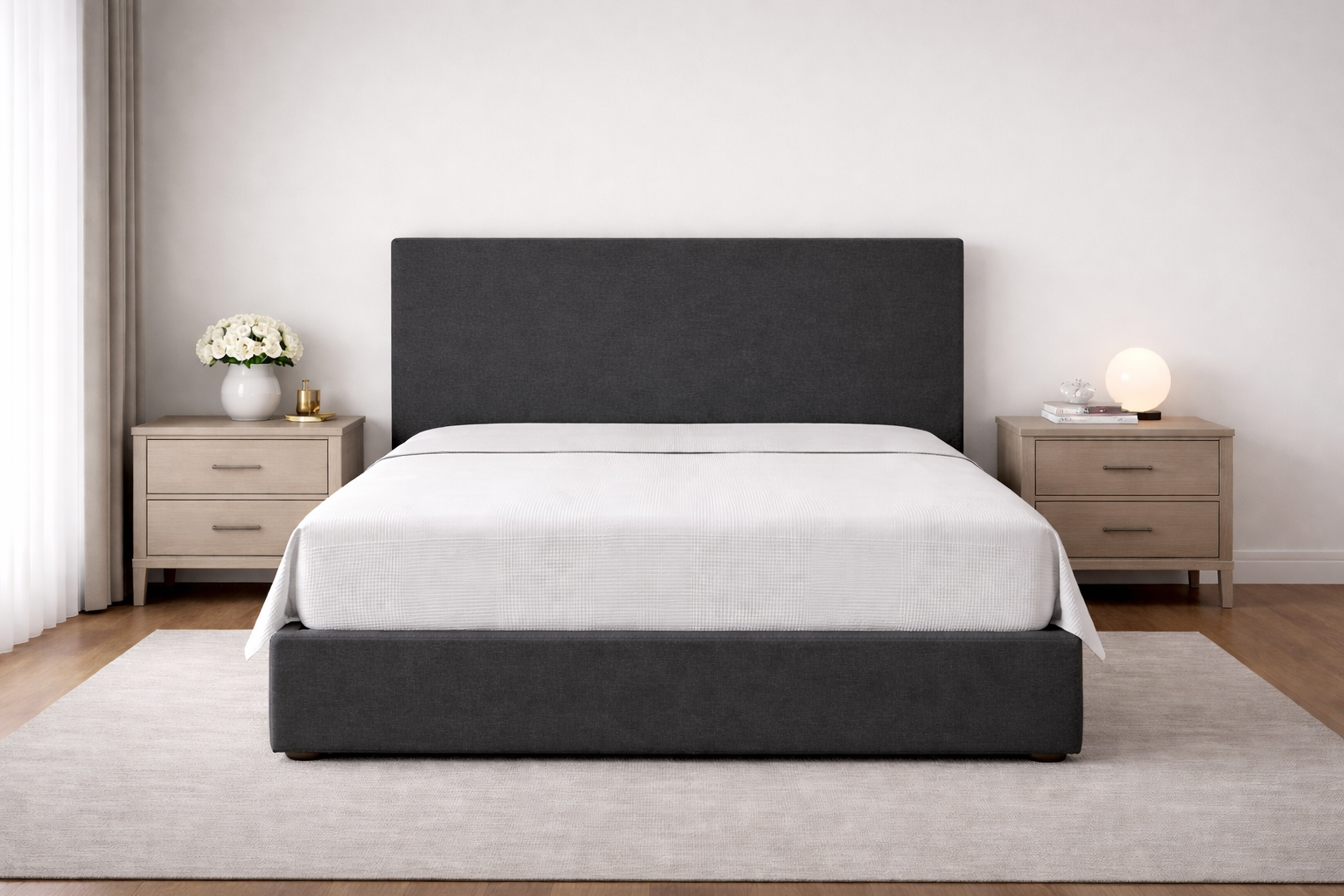 Αναδείξτε το υπνοδωμάτιό σας με ένα κρεβάτι που εκφράζει την απόλυτη minimal αισθητική. Ο λιτός σχεδιασμός με το ενιαίο, απλό κεφαλάρι δημιουργεί μια καθαρή και ισορροπημένη εικόνα, ιδανική για σύγχρονους και μοντέρνους χώρους.Η υφασμάτινη επένδυση σε σκούρα γκρι απόχρωση προσδίδει κομψότητα και διαχρονικό χαρακτήρα, ενώ η χαμηλή, στιβαρή βάση εξασφαλίζει σταθερότητα και αντοχή στον χρόνο. Οι καθαρές γραμμές και η απουσία περιττών λεπτομερειών το καθιστούν ιδανική επιλογή για όσους αγαπούν την απλότητα και τη διακριτική πολυτέλεια.
