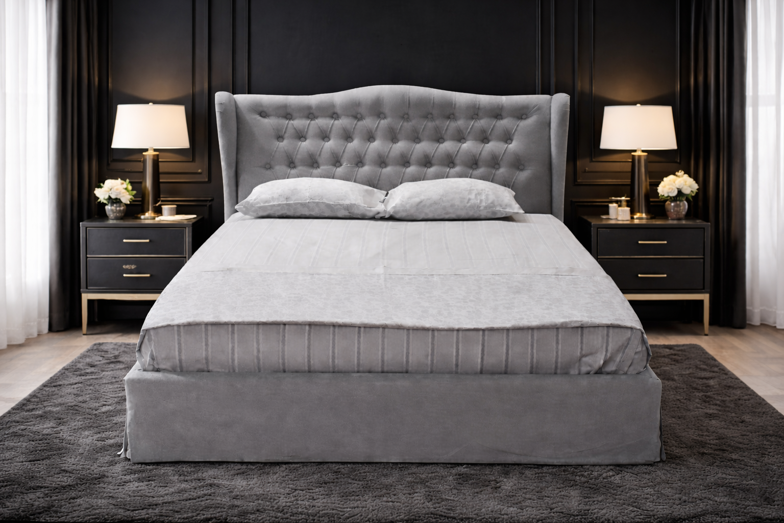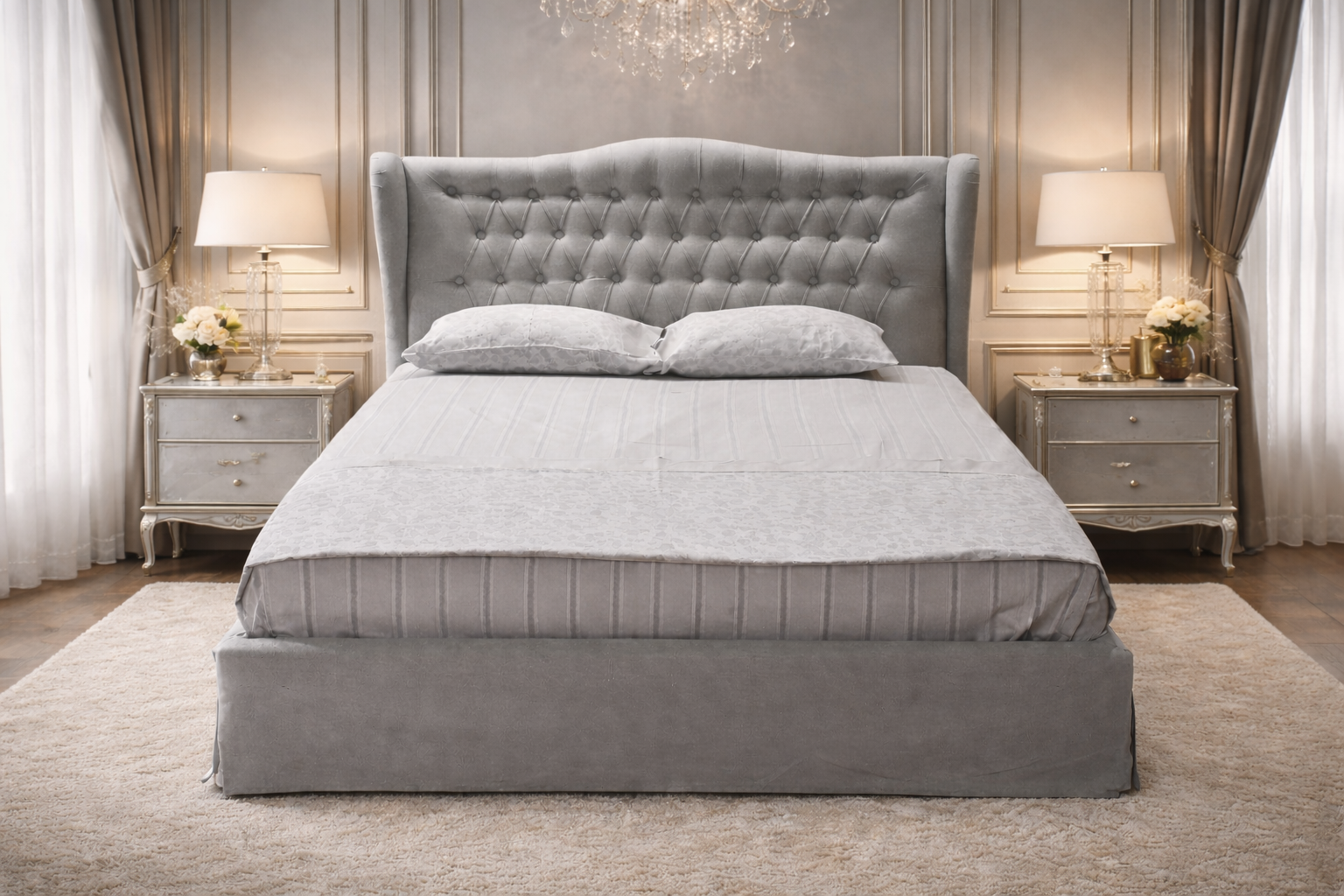 Ανακαλύψτε την απόλυτη έκφραση κομψότητας με ένα κρεβάτι που αποπνέει πολυτέλεια και διαχρονικό χαρακτήρα. Το εντυπωσιακό κεφαλάρι με καπιτονέ σχεδιασμό και διακριτικά κουμπιά δημιουργεί ένα αριστοκρατικό αποτέλεσμα, ενώ οι απαλά καμπυλωτές γραμμές του προσθέτουν φινέτσα και μοναδικό στυλ στο υπνοδωμάτιό σας.Η υφασμάτινη επένδυση σε κομψή γκρι απόχρωση χαρίζει ηρεμία και αρμονία στον χώρο, ταιριάζοντας ιδανικά τόσο σε κλασικές όσο και σε σύγχρονες διακοσμήσεις. Η στιβαρή κατασκευή εξασφαλίζει σταθερότητα και αντοχή στον χρόνο, προσφέροντας άνεση και σιγουριά σε κάθε χρήση.