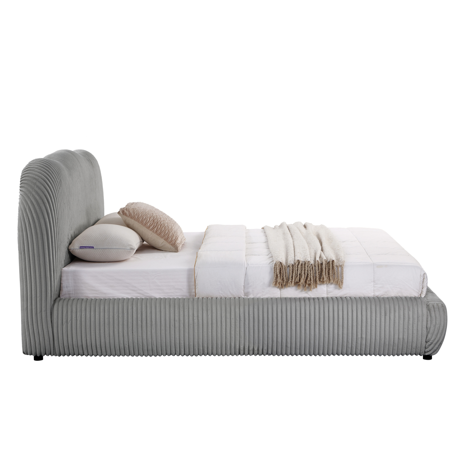 Το διπλό κρεβάτι KALLY για στρώμα 160×200εκ είναι νέα προσθήκη στην γκάμα μας. Ξεχωρίζει για την όμορφη επένδυση με ύφασμα συνθετικής γούνας (feaux fur) με κάθετες ρίγες σε ουδέτερο ΓΚΡΙ χρώμα.