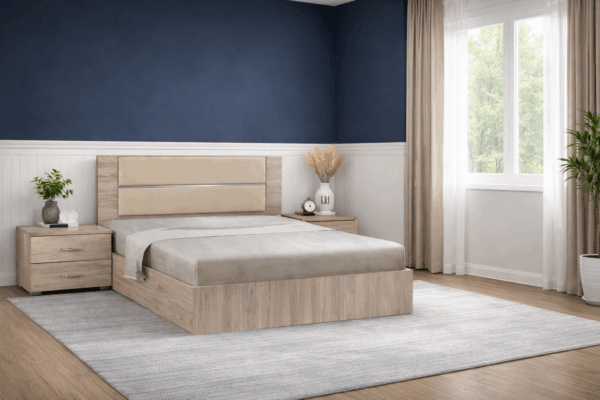 Δημιουργήστε ένα ζεστό και φωτεινό υπνοδωμάτιο με αυτό το καλαίσθητο κρεβάτι, που συνδυάζει τη φυσική όψη ξύλου με απαλές, φωτεινές αποχρώσεις. Ο διαχρονικός σχεδιασμός του προσφέρει αίσθηση ηρεμίας και άνεσης, ιδανική για κάθε σύγχρονο σπίτι.
