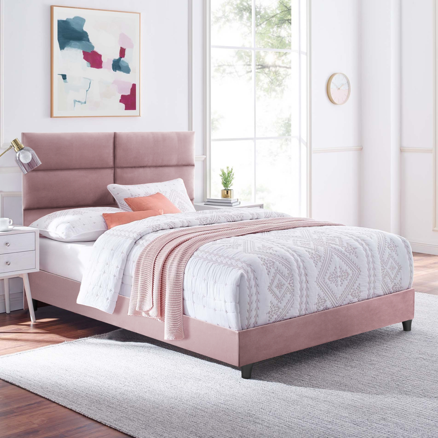 Η επένδυση έχει γίνει εξολοκλήρου από βελούδινο ύφασμα, χαρίζοντας ελκυστική όψη και μια εκλεπτυσμένη γοητεία στην διακόσμηση του υπνοδωματίου. Πρόκειται για ένα ύφασμα απαλό, χαλαρό, απολαυστικό και φινετσάτο που είναι αδύνατον να του αντισταθεί κάποιος. Το θετικό είναι ότι μπορεί να εναρμονιστεί εύκολα με κάθε είδος διακόσμησης, προσδίδοντας στο χώρο φινέτσα και καλαισθησία.