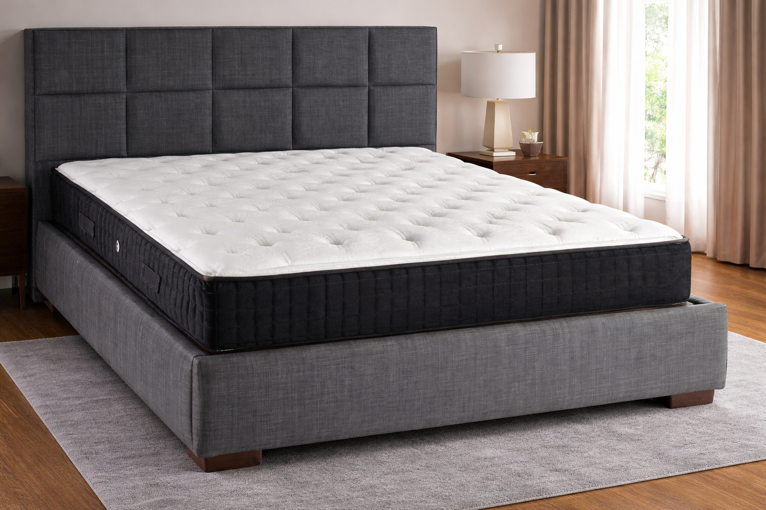 Αναδείξτε το υπνοδωμάτιό σας με ένα κρεβάτι που συνδυάζει μοντέρνο σχεδιασμό και διακριτική πολυτέλεια. Το εντυπωσιακό κεφαλάρι με γεωμετρικά, τετραγωνισμένα πάνελ δημιουργεί ένα σύγχρονο και κομψό αποτέλεσμα, ιδανικό για minimal και urban χώρους.Η υφασμάτινη επένδυση σε σκούρα γκρι απόχρωση προσφέρει ευελιξία στη διακόσμηση και αποπνέει κομψότητα, ενώ η χαμηλή, στιβαρή βάση ενισχύει τη σταθερότητα και την αίσθηση ποιότητας. Οι καθαρές γραμμές και οι προσεγμένες λεπτομέρειες καθιστούν το κρεβάτι μια διαχρονική επιλογή που δεν περνά απαρατήρητη.