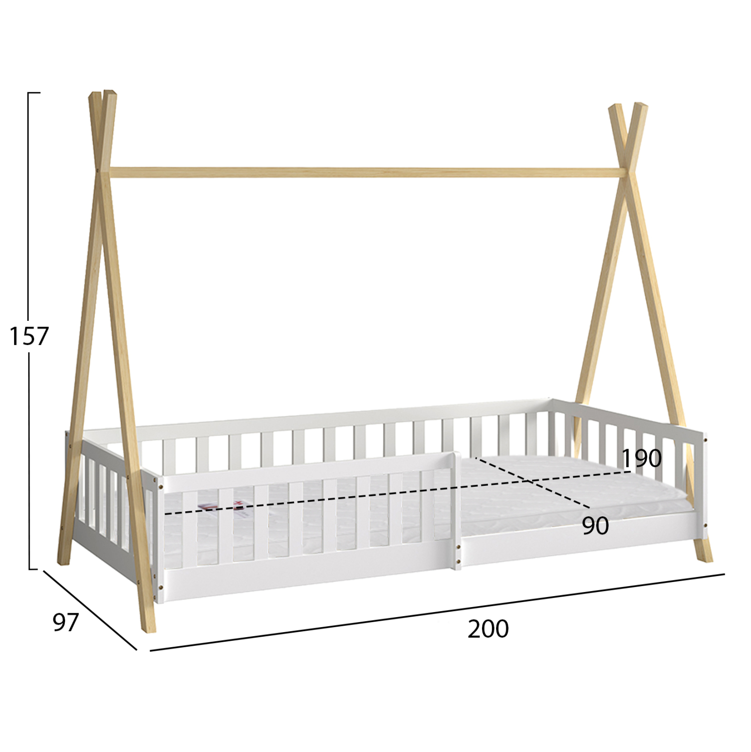 Σας παρουσιάζουμε το «MUNK» που είναι ένα καινούργιο παιδικό κρεβάτι τύπου Montessori που σημαίνει ότι έχει σχεδιαστεί σύμφωνα με το εκπαιδευτικό σύστημα Montessori, κατά το οποίο τα παιδιά μαθαίνουν καλύτερα, όταν επιλέγουν μόνα τους τι θα κάνουν. Το χαμηλό ύψος κρεβατιού βοηθά να εξερευνούν την αυτονομία τους και να ανεβοκατεβαίνουν από το κρεβάτι τους ελεύθερα ανά πάσα στιγμή. Είναι σε διάσταση για μονό στρώμα 90×190 εκ, και αποτελεί μια άριστης ποιότητας, μοντέρνα και ασφαλή επιλογή για το παιδικό δωμάτιο. Είναι ξύλινο σε διχρωμία ΦΥΣΙΚΟΥ-ΛΕΥΚΟΥ βαμμένο με αβλαβές βερνίκι με βάση το νερό και μη τοξικό, ιδανικό για παιδιά. Το κρεβάτι έχει σχήμα σκηνής που θα δώσει μια ευχάριστη, «ζεστή», και παιχνιδιάρικη όψη σε κάθε παιδικό δωμάτιο, ενώ διαθέτει περιμετρικά κάγκελα για ακόμα μεγαλύτερη ασφάλεια.