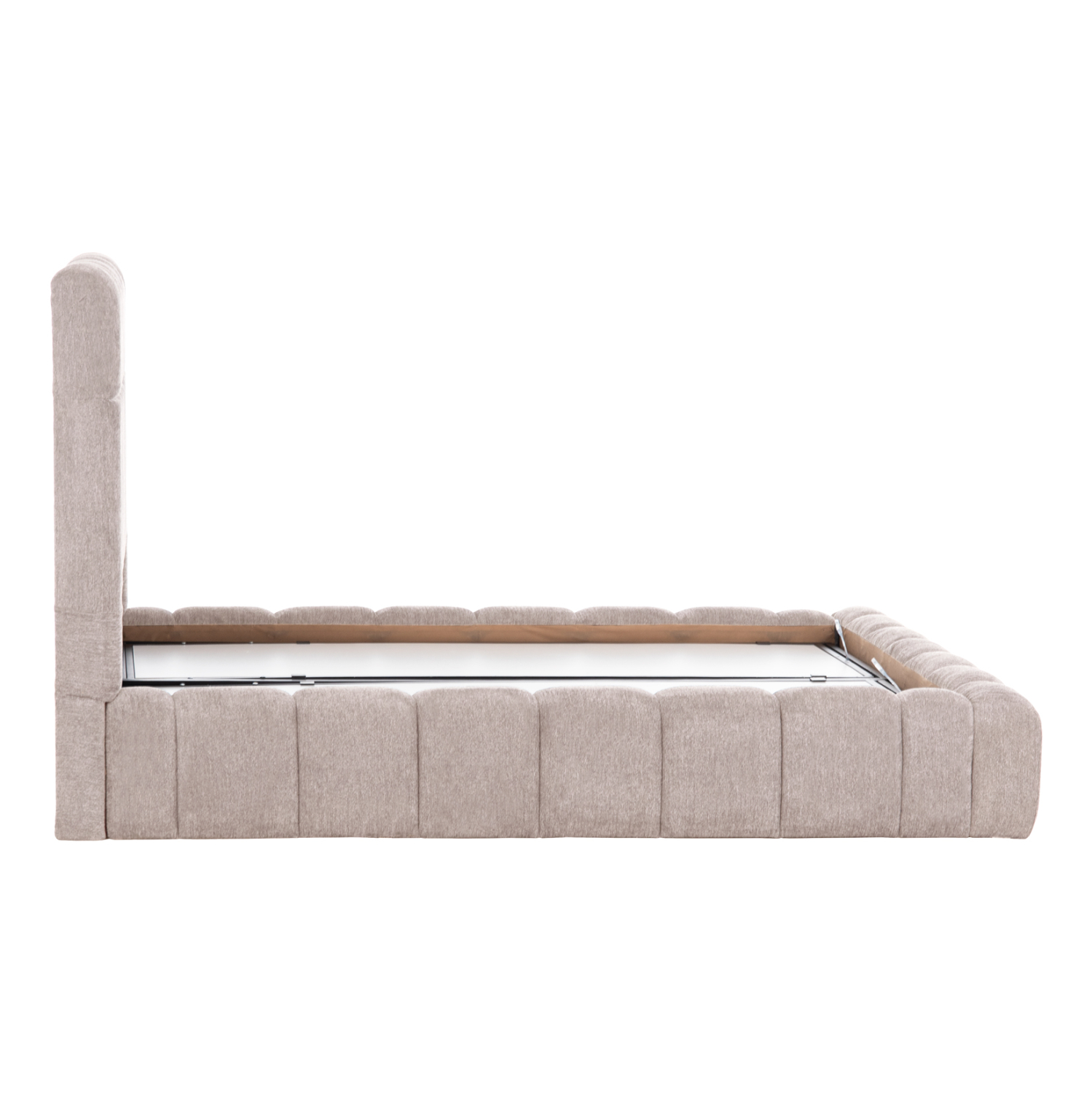 Το RAMON είναι ένα κρεβάτι που θα αγαπήσετε με την πρώτη ματιά! Το κεφαλάρι είναι ψηλό με τεχνοτροπία καπιτονέ από «ζεστό» και εντυπωσιακό ύφασμα TEDDY σε ΜΠΕΖ χρώμα. Τα πλαϊνά του κρεβατιού αλλά και το ποδαρικό είναι ίδιας αισθητικής με το κεφαλάρι και «αγκαλιάζουν» το στρώμα! Όμως, το κύριο χαρακτηριστικό αυτού του κρεβατιού είναι ότι δεν ακολουθεί την κλασική κατασκευή με τις τάβλες του σομιέ για την στήριξη του στρώματος, αλλά αντίθετα αποτελείται από μια συνεχόμενη επιφάνεια (2 μοριοσανίδες), πάνω στις οποίες τοποθετείται το στρώμα! Επιπλέον, η κάθε επιφάνεια από μοριοσανίδα ανασηκώνεται με μεταλλικό μηχανισμό ασφαλείας με 4 αμορτισέρ και διαφανείς πλαστικές λαβές προσφέροντας έναν μεγάλο αποθηκευτικό χώρο. Σε διπλή διάσταση στρώματος 160×200 εκ. θα χωρέσει κάθε σας όνειρο!