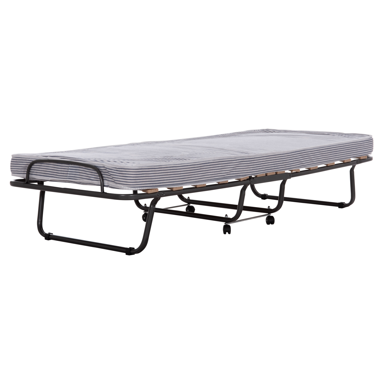 Το NOBLE είναι ένα πρακτικότατο μεταλλικό αναδιπλούμενο κρεβάτι (ράντζο) τύπου βαλίτσα (εκστρατείας) σε ΜΑΥΡΟ χρώμα, που θα σας λύσει τα χέρια. Μπορεί να «διπλωθεί» και να μεταφερθεί ή να αποθηκευτεί εύκολα χάρη στα ροδάκια που διαθέτει, προσφέροντας μια ποιοτική λύση όπου χρειαστεί. Διαθέτει ανατομικές ξύλινες τάβλες.