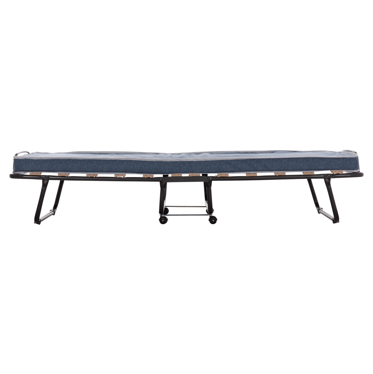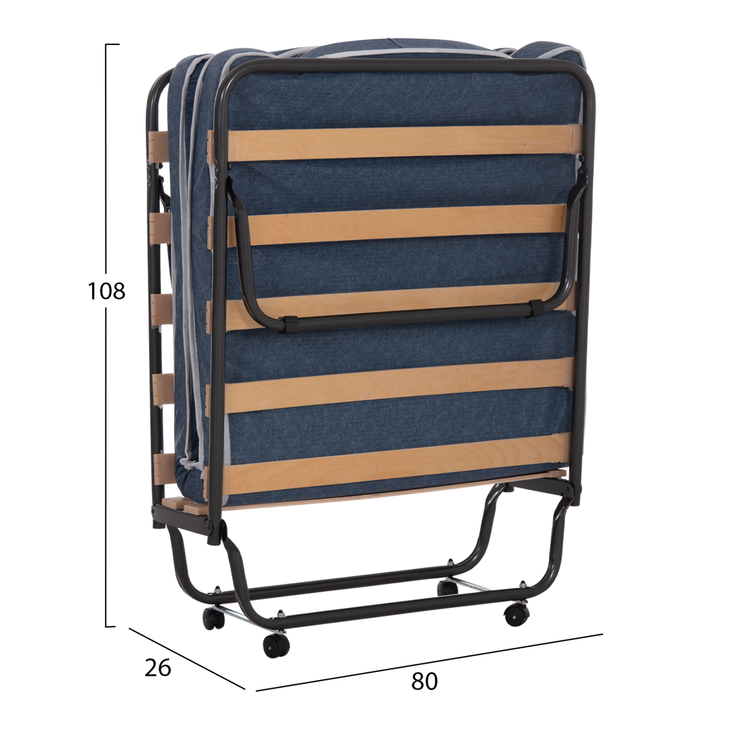 Το SLADE είναι ένα πρακτικότατο μεταλλικό αναδιπλούμενο κρεβάτι (ράντζο) τύπου βαλίτσα (εκστρατείας) σε γκρι χρώμα, που θα σας λύσει τα χέρια. Μπορεί να «διπλωθεί» και να μεταφερθεί ή να αποθηκευτεί εύκολα χάρη στα ροδάκια που διαθέτει, προσφέροντας μια ποιοτική λύση όπου χρειαστεί. Διαθέτει ανατομικές ξύλινες τάβλες.