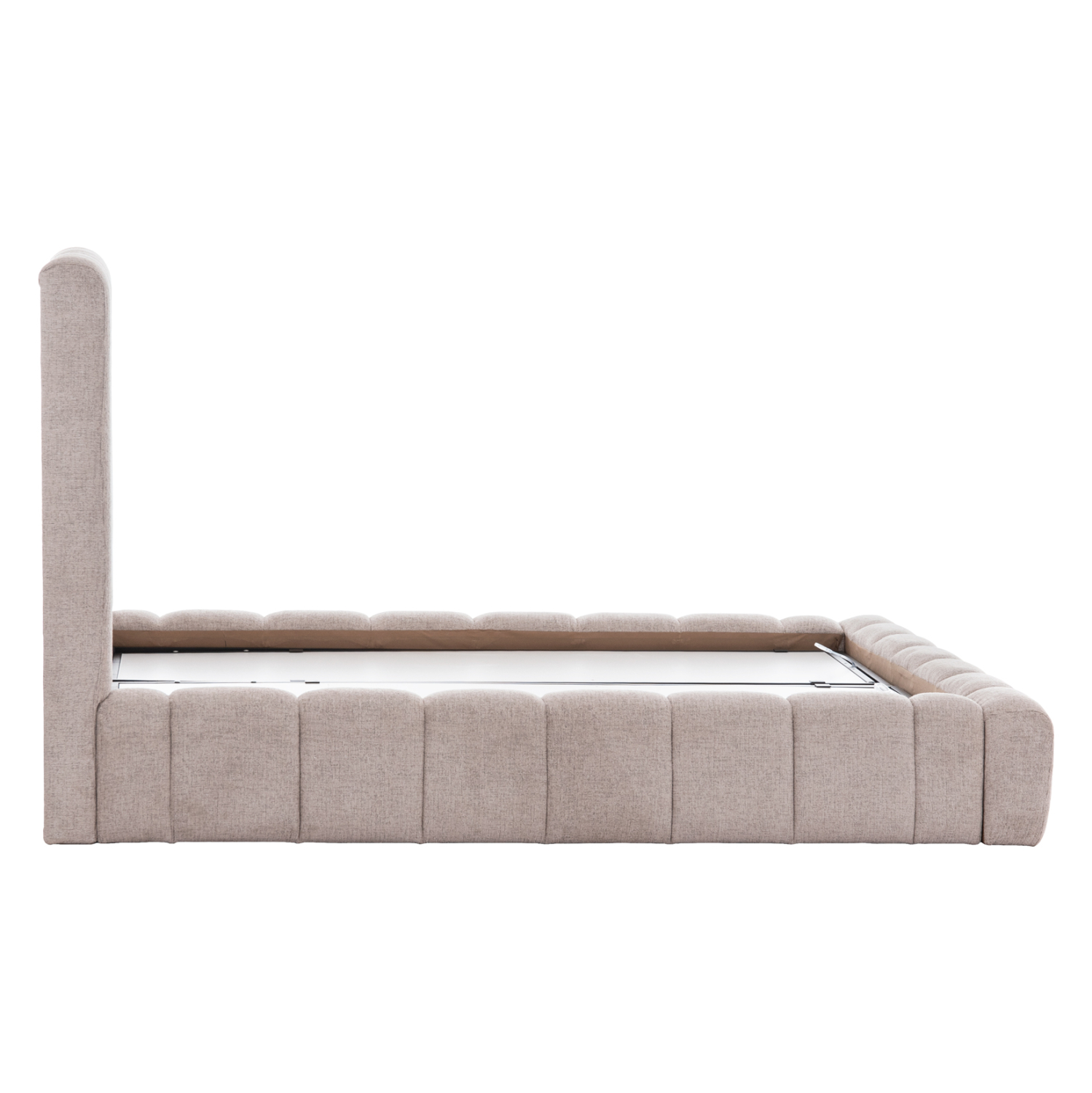 Το REMO είναι ένα κρεβάτι που θα αγαπήσετε με την πρώτη ματιά! Το κεφαλάρι είναι ψηλό με τεχνοτροπία καπιτονέ με κάθετες ραφές από «ζεστό» και εντυπωσιακό ύφασμα TEDDY σε ΜΠΕΖ χρώμα. Τα πλαϊνά του κρεβατιού αλλά και το ποδαρικό είναι ίδιας αισθητικής με το κεφαλάρι και «αγκαλιάζουν» το στρώμα! Όμως, το κύριο χαρακτηριστικό αυτού του κρεβατιού είναι ότι δεν ακολουθεί την κλασική κατασκευή με τις τάβλες του σομιέ για την στήριξη του στρώματος, αλλά αντίθετα αποτελείται από μια συνεχόμενη επιφάνεια (2 μοριοσανίδες), πάνω στις οποίες τοποθετείται το στρώμα! Επιπλέον, η κάθε επιφάνεια από μοριοσανίδα ανασηκώνεται με μεταλλικό μηχανισμό ασφαλείας με 4 αμορτισέρ και διαφανείς πλαστικές λαβές προσφέροντας έναν μεγάλο αποθηκευτικό χώρο. Σε διπλή διάσταση στρώματος 160×200 εκ. θα χωρέσει κάθε σας όνειρο!