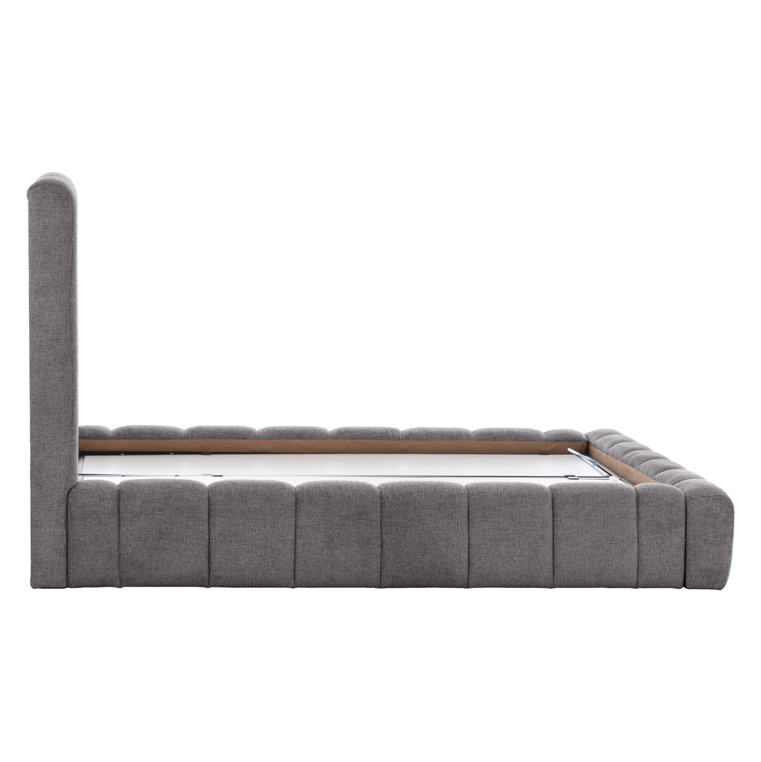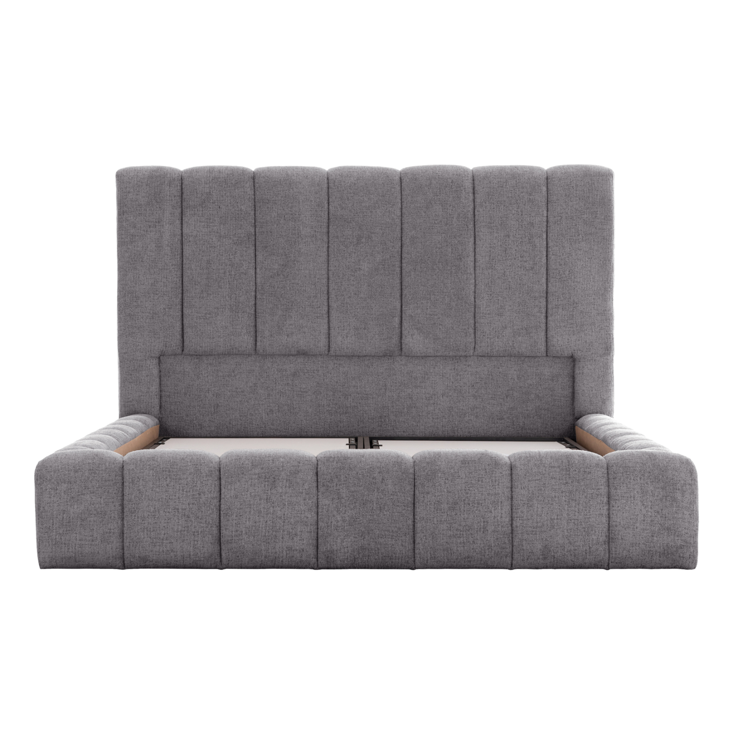 Το REMO είναι ένα κρεβάτι που θα αγαπήσετε με την πρώτη ματιά! Το κεφαλάρι είναι ψηλό με τεχνοτροπία καπιτονέ με κάθετες ραφές από «ζεστό» και εντυπωσιακό ύφασμα TEDDY σε ΓΚΡΙ χρώμα. Τα πλαϊνά του κρεβατιού αλλά και το ποδαρικό είναι ίδιας αισθητικής με το κεφαλάρι και «αγκαλιάζουν» το στρώμα! Όμως, το κύριο χαρακτηριστικό αυτού του κρεβατιού είναι ότι δεν ακολουθεί την κλασική κατασκευή με τις τάβλες του σομιέ για την στήριξη του στρώματος, αλλά αντίθετα αποτελείται από μια συνεχόμενη επιφάνεια (2 μοριοσανίδες), πάνω στις οποίες τοποθετείται το στρώμα! Επιπλέον, η κάθε επιφάνεια από μοριοσανίδα ανασηκώνεται με μεταλλικό μηχανισμό ασφαλείας με 4 αμορτισέρ και διαφανείς πλαστικές λαβές προσφέροντας έναν μεγάλο αποθηκευτικό χώρο. Σε διπλή διάσταση στρώματος 160×200 εκ. θα χωρέσει κάθε σας όνειρο!