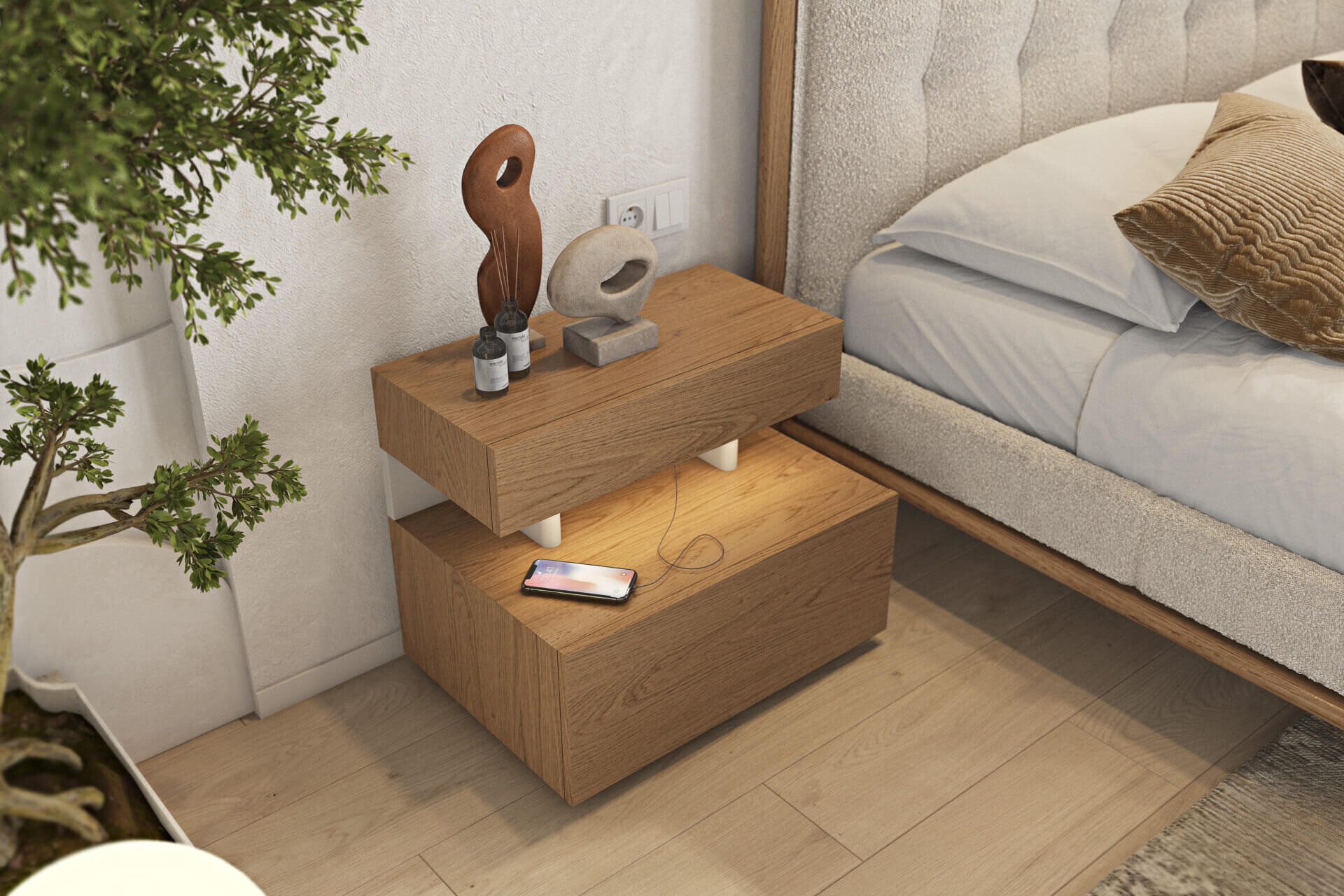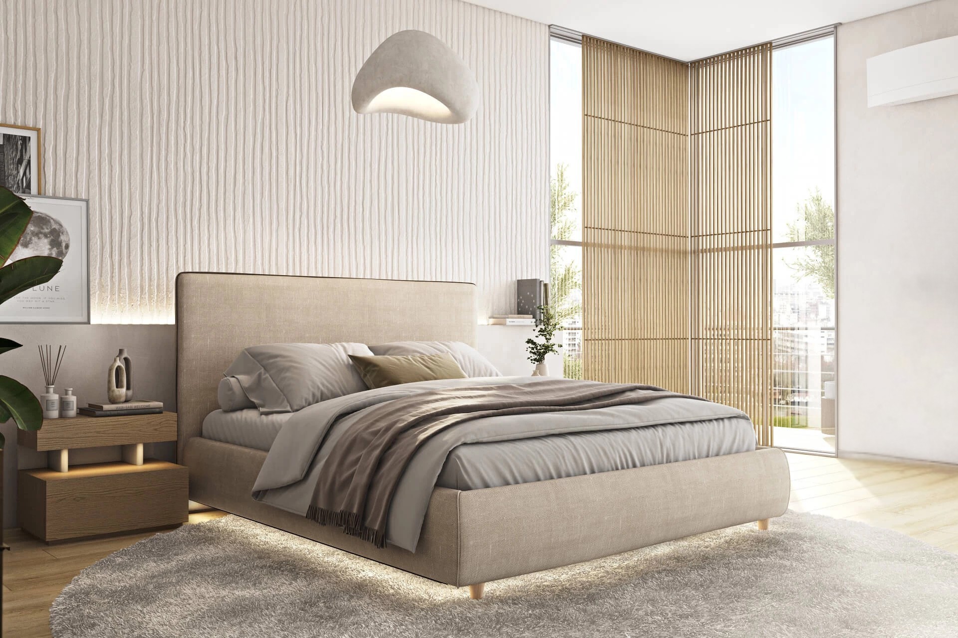 Ο προαιρετικός led φωτισμός που μπορεί να τοποθετηθεί στο ποδαρικό, ή περιμετρικά στη βάση του κρεβατιού, με ή χωρίς ανιχνευτή κίνησης, θα δημιουργήσει ιδιαίτερη ατμόσφαιρα, με χαμηλή κατανάλωση, παρέχοντας βοήθεια ειδικά τις βραδινές ώρες. Και όσον αφορά την τεχνολογία την ενσωματώσαμε στο έξυπνο χειριστήριο του φωτισμού που το συνδέει με τα smart home kit πακέτα για να το διαχειρίζεστε μαζί με τις υπόλοιπες έξυπνες συσκευές του σπιτιού σας!