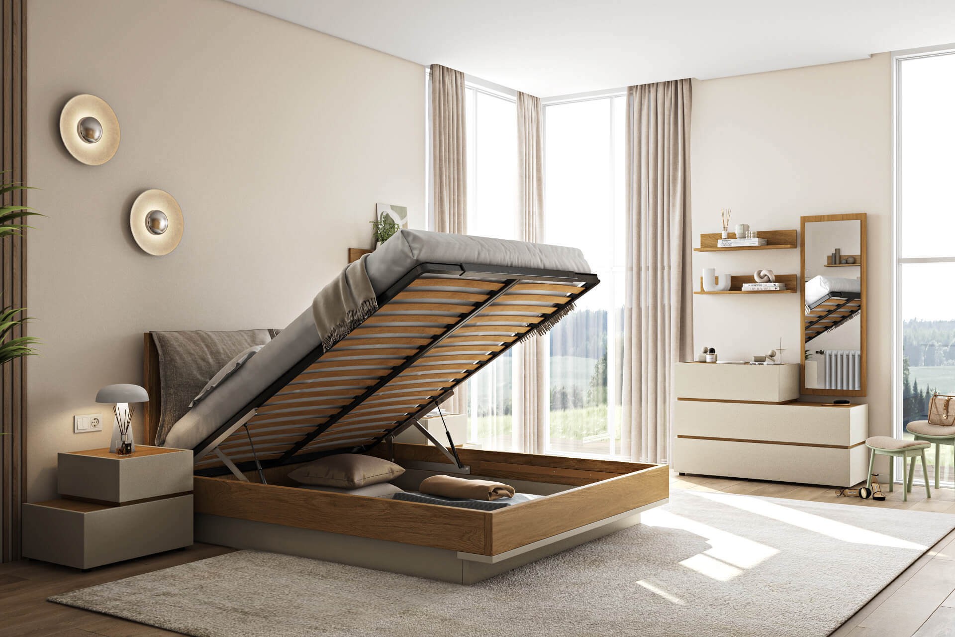 Το κρεβάτι Lost Beige είναι κατασκευασμένο από τεχνητό καπλαμά σε light oak χρώμα και συνδυάζεται υπέροχα με την ξύλινη βάση στήριξης σε cream beige χρώμα λάκας. Τα μαξιλάρια που ολοκληρώνουν το στυλ του κρεβατιού είναι αποσπώμενα και πλένονται με μεγάλη ευκολία σε περίπτωση που το ύφασμα μας το επιτρέπει, δημιουργώντας παράλληλα μια ιδιαίτερα ζεστή αίσθηση.