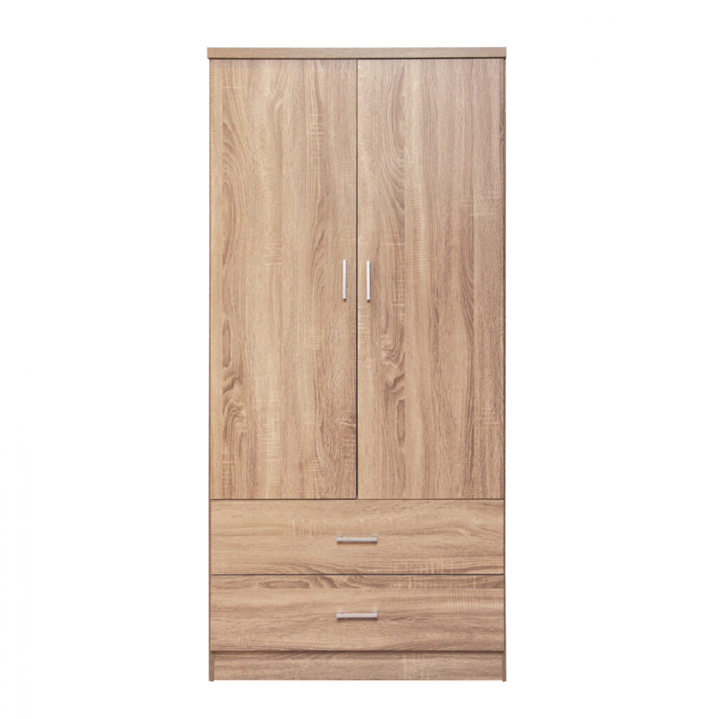 Ντουλάπα PLAYROOM από μελαμίνη δίφυλλη σε χρώμα ροζ με δύο πόρτες, δύο συρτάρια και ένα εσωτερικό ράφι.