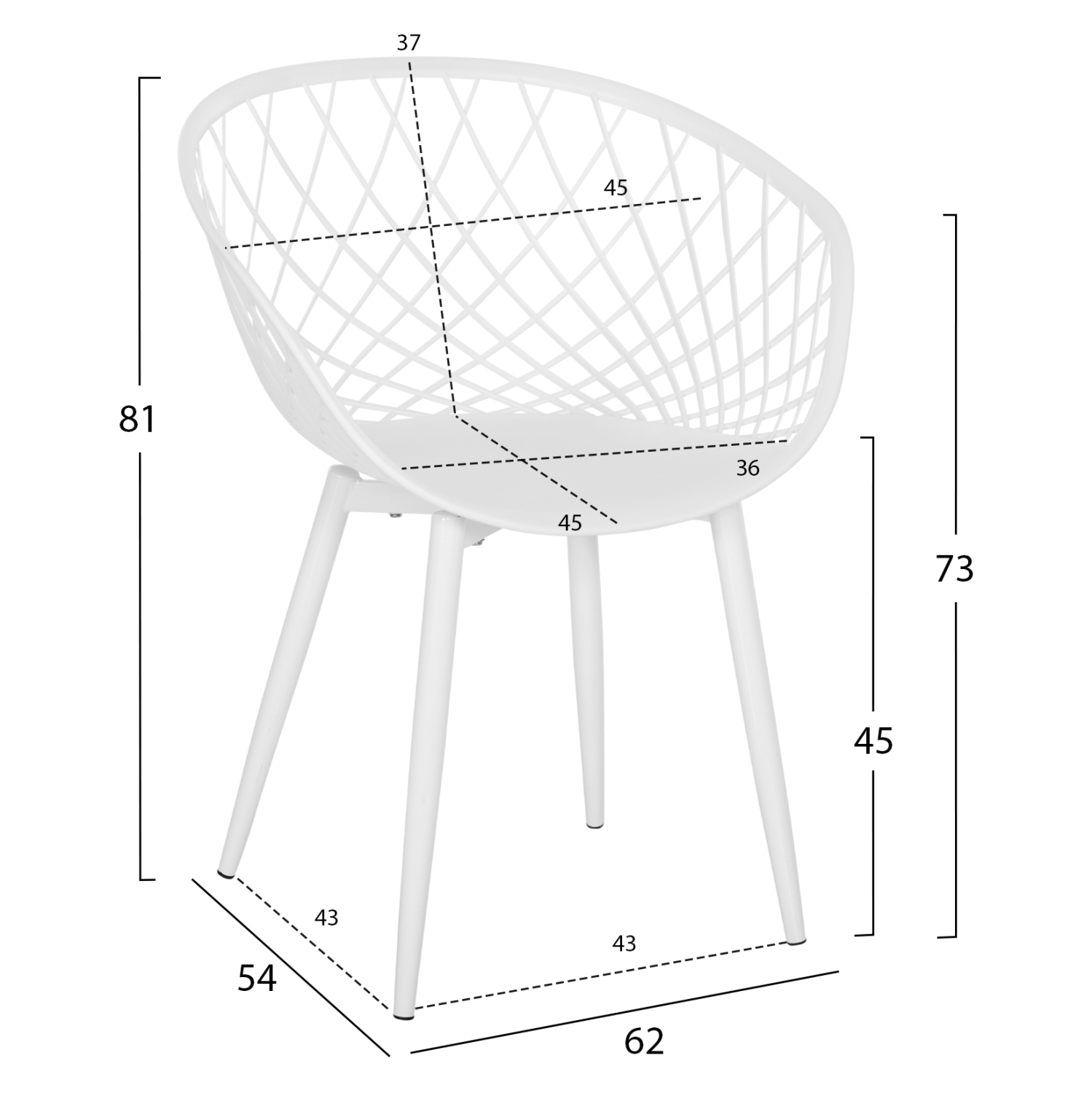 Η πολυθρόνα ARIADNE είναι ποιοτική και κομψή στην όψη, και σίγουρα τραβάει τα βλέμματα. Η πλάτη και το κάθισμα είναι ένα μονοκόμματο χυτό κομμάτι πολυπροπυλενίου σε ΛΕΥΚΟ χρώμα. Η πλάτη, μάλιστα, έχει «δικτυωτό» σχήμα, πράγμα που την κάνει ευχάριστη και ελαφριά. Η βάση του καθίσματος και τα πόδια είναι μεταλλικά σε ΛΕΥΚΟ χρώμα. Ιδανική επιλογή και για επαγγελματική χρήση, όπως σε catering κτλ.