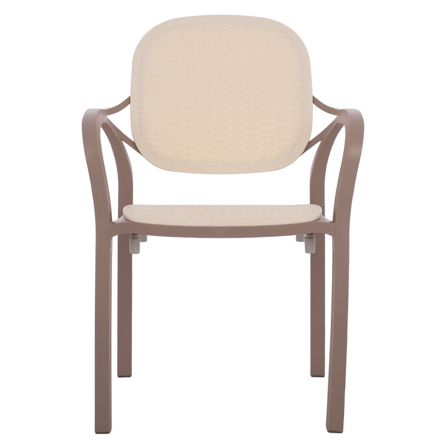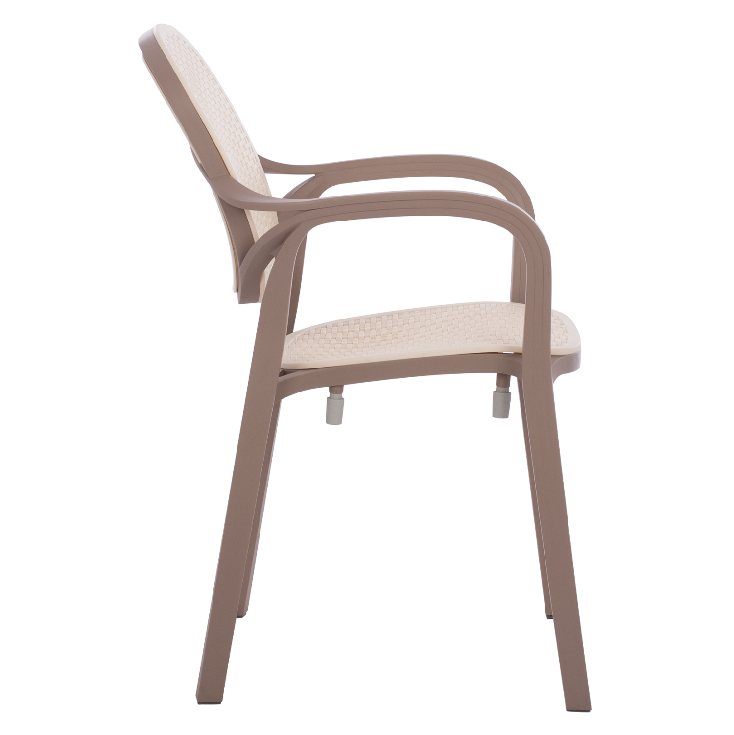 Πολυθρόνα πολυπροπυλενίου σε καπουτσίνο χρώμα με μπεζ απόχρωση στην πλάτη και στο κάθισμα. Ιδανική πρόταση τόσο για εξωτερικούς, όσο και για εσωτερικούς χώρους. Η πολυθρόνα έχει ψηλά μπράτσα και το κάθισμα και η πλάτη τους έχουν όψη rattan. Ιδανικές για επαγγελματικούς χώρους αλλά και για το σπίτι σας, θα σας χαρίσουν άνεση και ξεκούραση χάρη στην όμορφη σχεδίαση του καθίσματός τους και στα ψηλά τους μπράτσα με στρογγυλεμένες γωνίες.