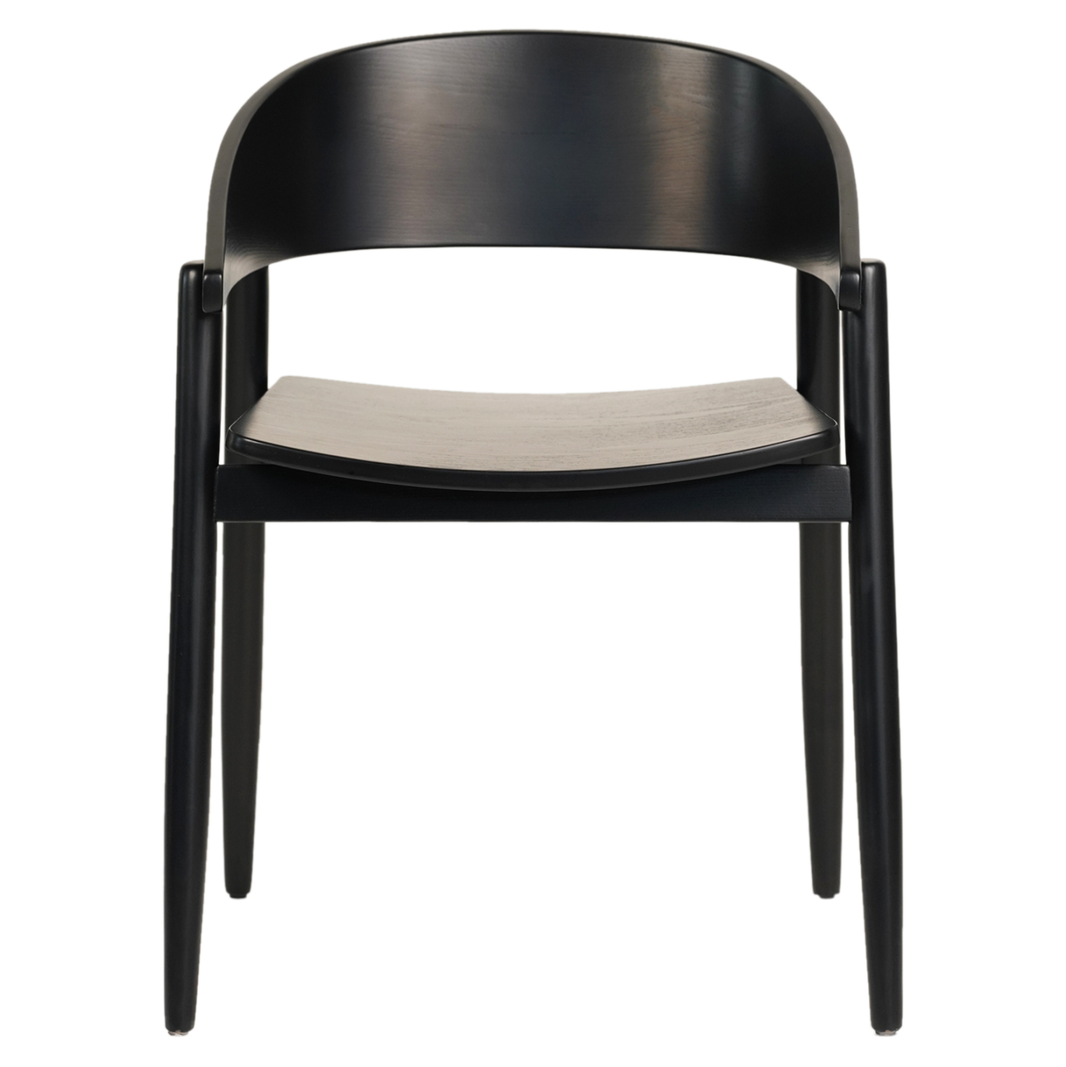 Η πολυθρόνα τραπεζαρίας CANOP δεν έχει ξεχωριστά μπράτσα αλλά ο σχεδιασμός της πλάτης είναι κυρτός αγκαλιάζοντας το σώμα δίνοντας την αίσθηση μπράτσων. Ο σκελετός της όπως και το κάθισμα, είναι από ποιοτικό ξύλο φράξινου σε ΜΑΥΡΟ χρώμα. Μια πολυθρόνα που θα αναβαθμίσει την τραπεζαρία σε κάθε επαγγελματικό χώρο.