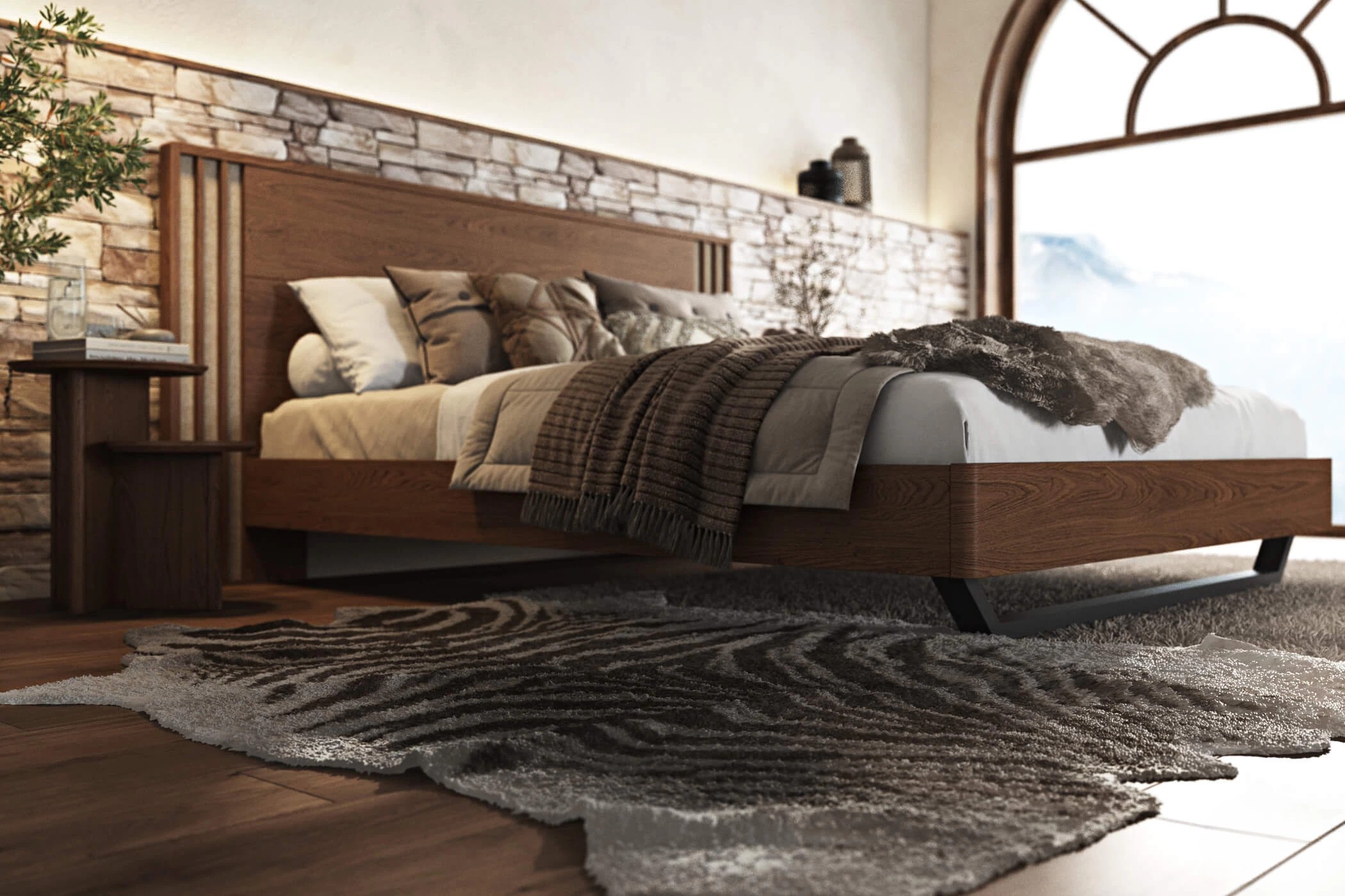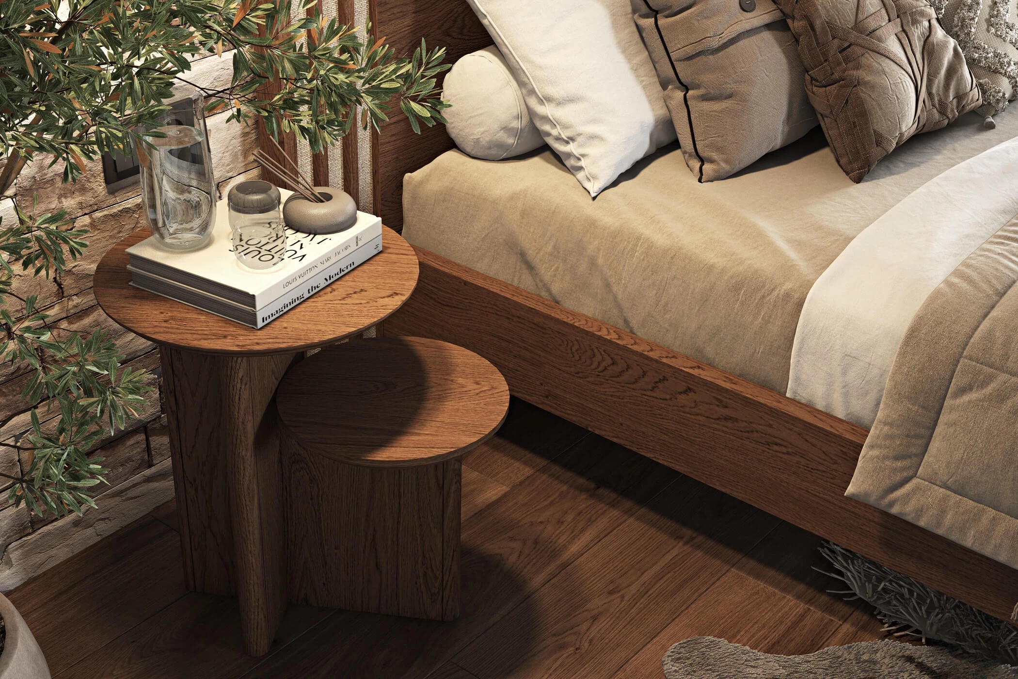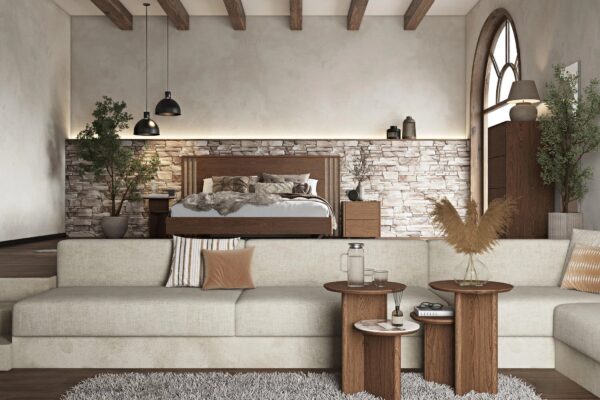 Κρεβατοκάμαρα από ξύλο δρυς. Συνδυάζει μασίφ ξύλινες επιφάνειες και ψάθα στο κεφαλάρι. Το ποδαρικό έχει στρογγυλεμένες γωνιές, στηρίζεται σε ξύλινη βάση με άνετο αποθηκευτικό χώρο. Διαθέσιμο σε 2 διαστάσεις στρώματος.
