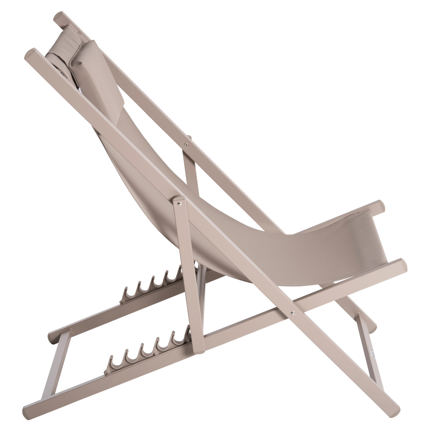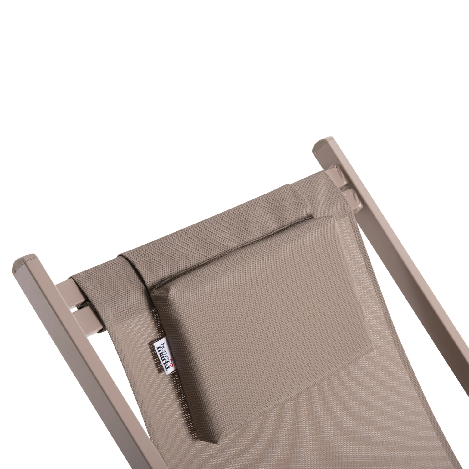 Η συγκεκριμένη, έχει κλασσικό σχεδιασμό με πλάτη που στηρίζει το σώμα και με εξτρα μαξιλάρι για το κεφάλι. Το χρώμα της είναι ΣΑΜΠΑΝΙ τόσο στον σκελετό, όσο και στο textilene.