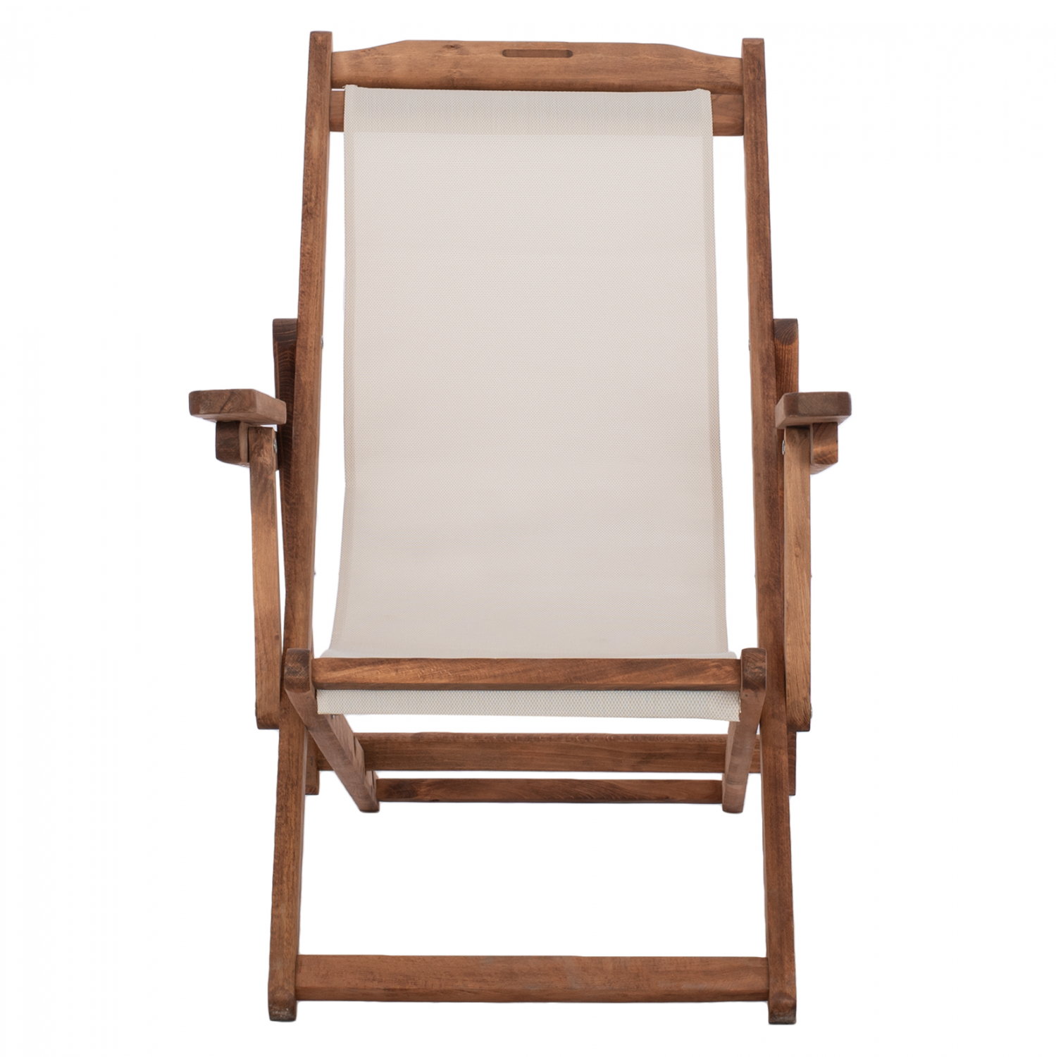 Σεζλόνγκ Λήμνος με μπράτσα σε καρυδί απόχρωση και pvc εκρου 62,5x97x105 εκ.