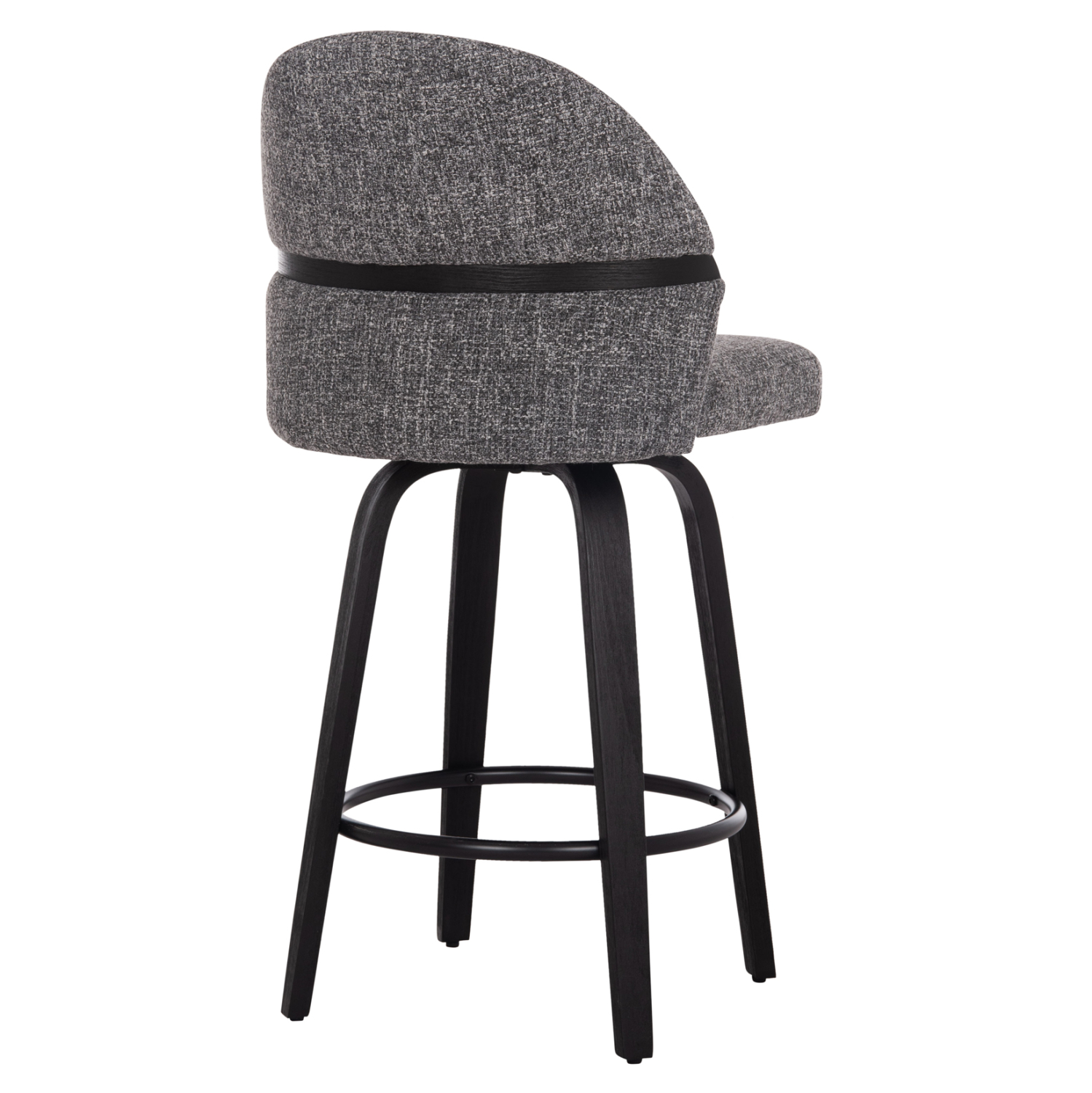 Το περιστρεφόμενο σκαμπό μπαρ μεσαίου ύψους DEKKER αποτελεί μια νέα πρόταση για τον επαγγελματικό σας χώρο. Ο σκελετός είναι από plywood σε ΜΑΥΡΟ χρώμα, ενώ το κάθισμα και η πλάτη είναι επενδυμένα με υπέροχο ανάγλυφο ύφασμα σε ΓΚΡΙ χρώμα. Στο κάτω μέρος των ποδιών υπάρχουν ρεγουλατόροι για ρύθμιση της σταθερότητας του σκαμπό, ενώ διαθέτει και υποπόδιο.