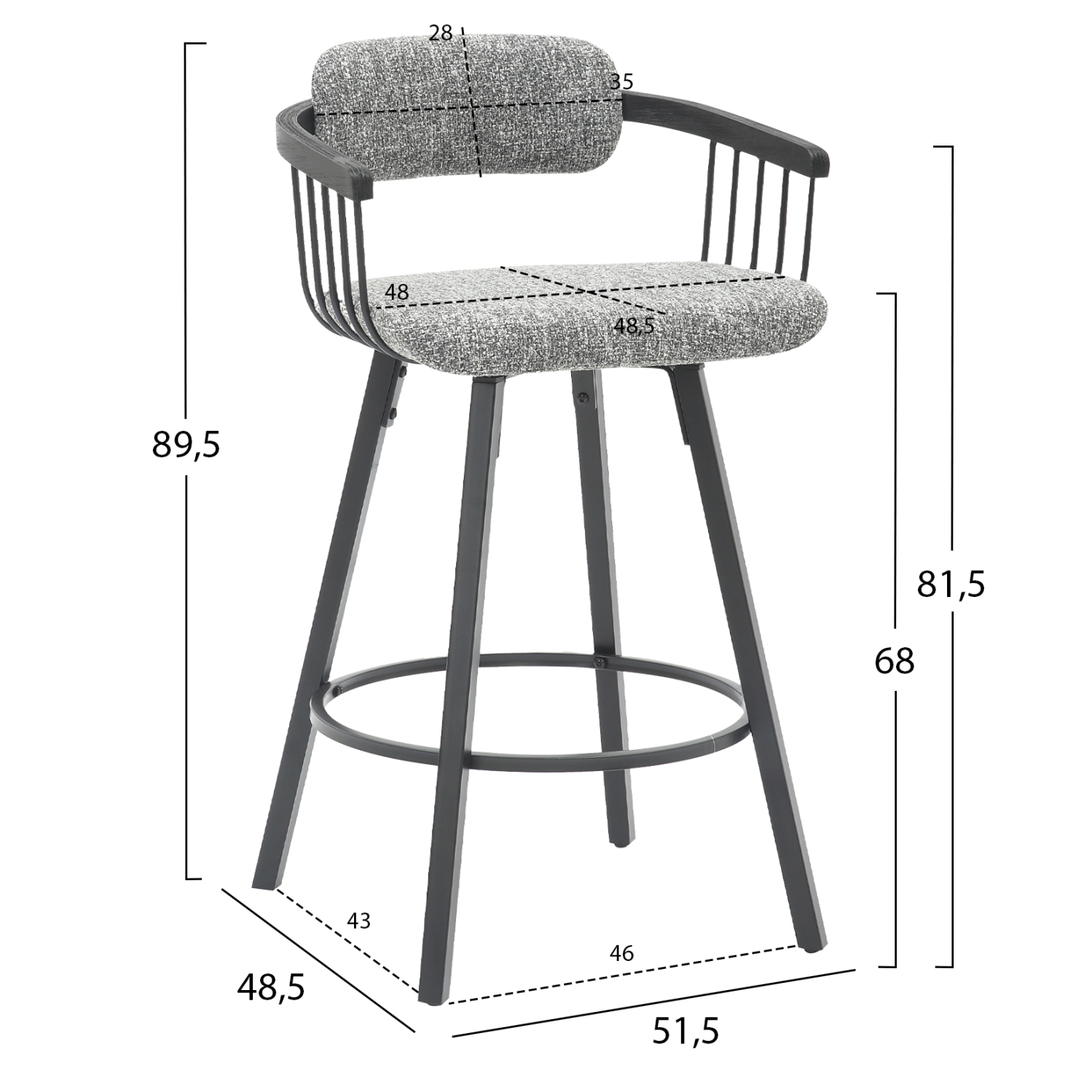 Διαστάσεις καθίσματος: 48×48,5 εκ.