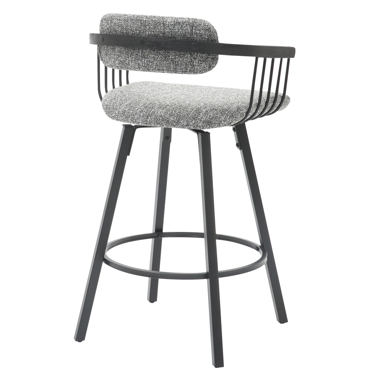 Το LANG είναι ένα σκαμπό μεσαίου ύψους για μπαρ, με ημικυκλική πλάτη. Όλος ο σκελετός είναι μεταλλικός σε ΜΑΥΡΟ χρώμα ενώ το κάθισμα και η μίνιμαλ πλάτη είναι επενδυμένα με ποιοτικό ΓΚΡΙ ύφασμα. Ωστόσο, αυτό που ξεχωρίζει είναι ότι το κάθισμα είναι ΠΕΡΙΣΤΡΕΦΟΜΕΝΟ απογειώνοντας την πρακτικότητά του!