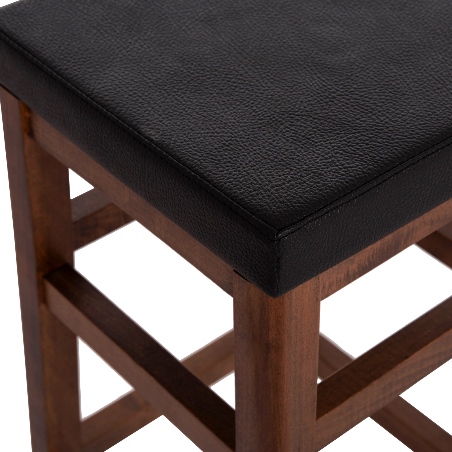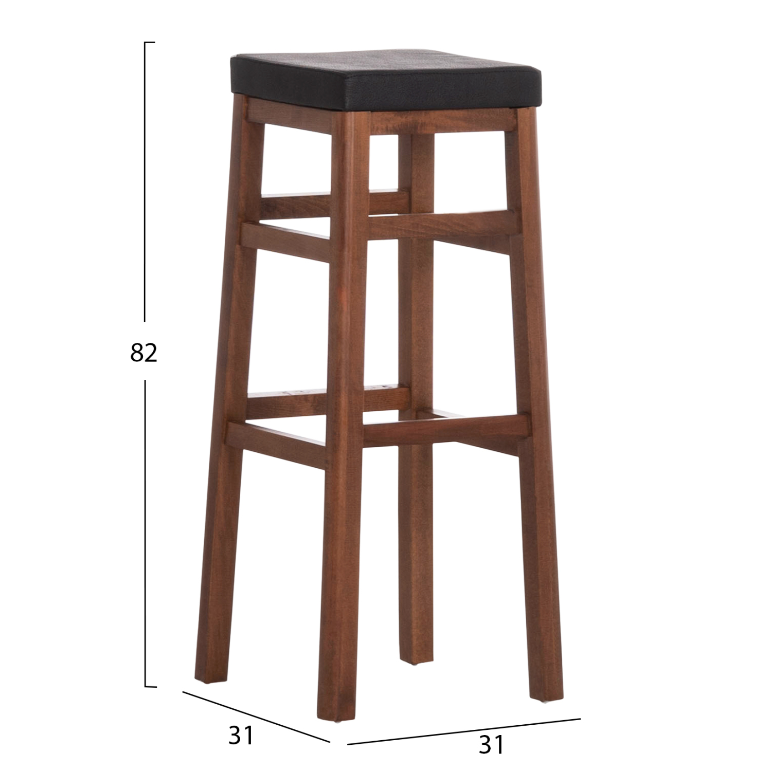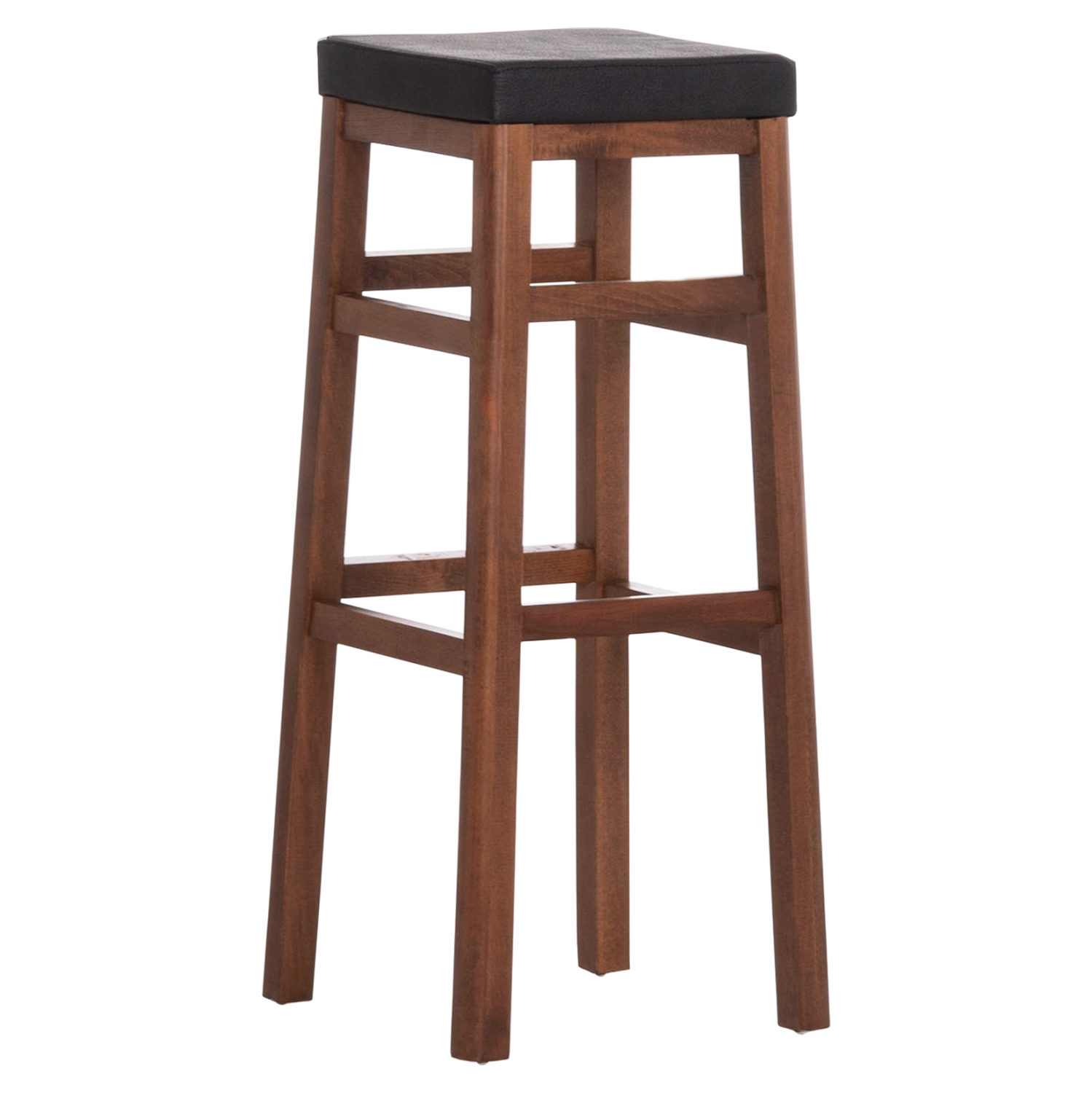 Σκαμπώ καφενείου από ξύλο οξιάς σε χρώμα καρυδί και κάθισμα απο τεχνόδερμα σε μαύρη απόχρωση.