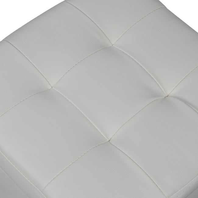 Αναβαθμίστε τον χώρο σας με το τετράγωνο σκαμπό CUBE, έναν συνδυασμό μοντέρνου σχεδιασμού, πρακτικότητας και άνεσης. Η κομψή του εμφάνιση με λευκή επένδυση PU δέρματος και καπιτονέ τεχνοτροπία το καθιστά ιδανικό για κάθε σαλόνι, υπνοδωμάτιο ή χώρο υποδοχής.